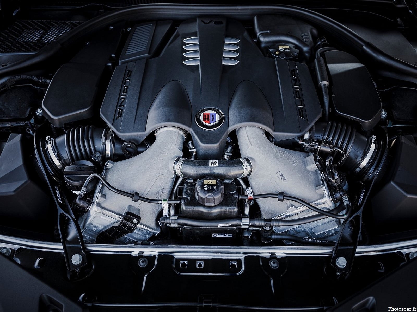 - Ce moteur bénéficie de turbocompresseurs, de refroidisseurs et d’un échappement spécifiques à Alpina.