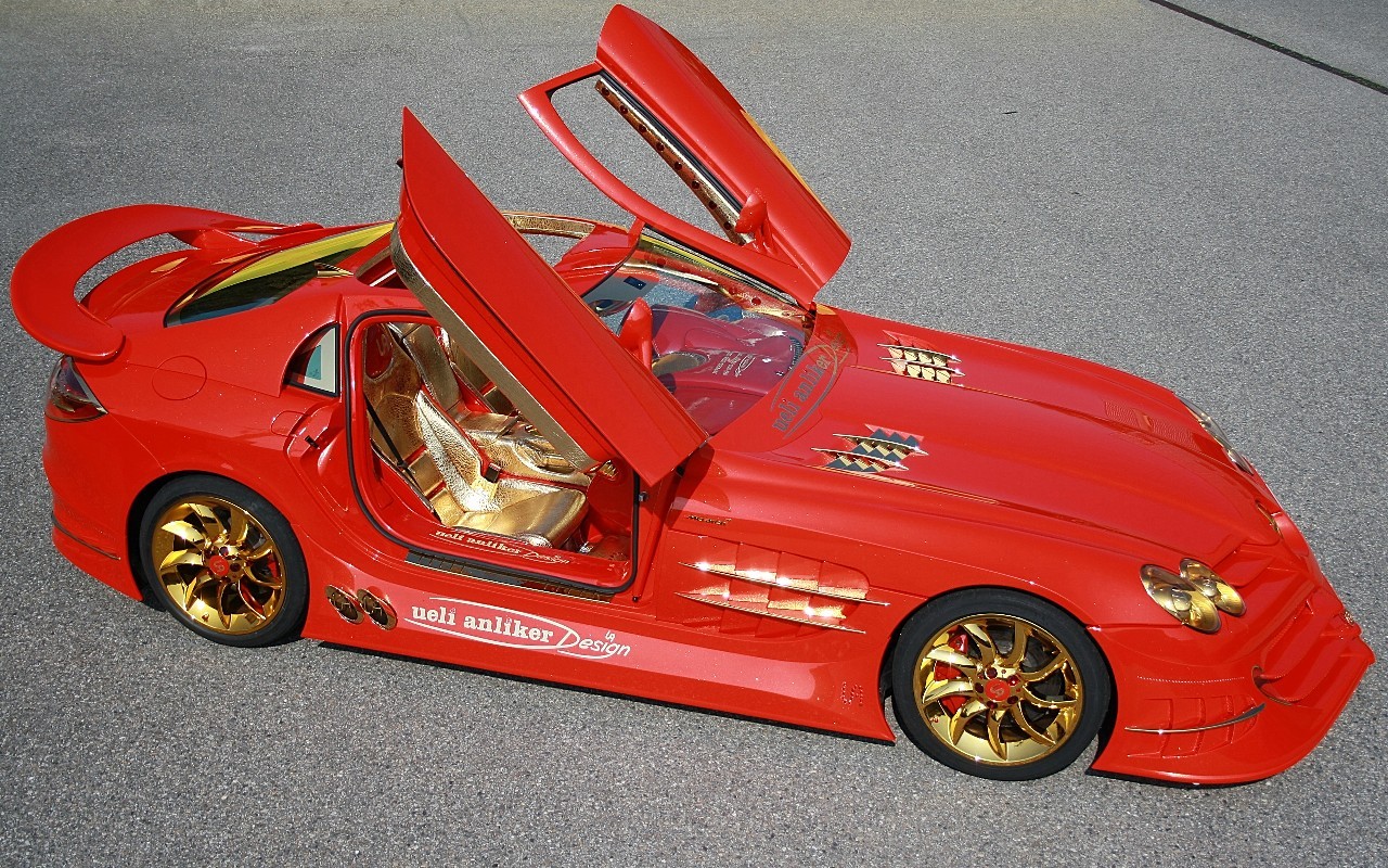 La SLR 999 Red Gold Dream bien perçue comme étant la joie de l’entrepreneur suisse Ueli Anliker. Cette « pauvre » Mercedes SLR à subit une modification esthétique assez tape à l’œil. Au total, pas moins de 11 millions de dollars dépensés afin de mener son projet à terme. Que l’on aime ou que l’on n’aime pas, cette Mercedes est au summum du luxe.
