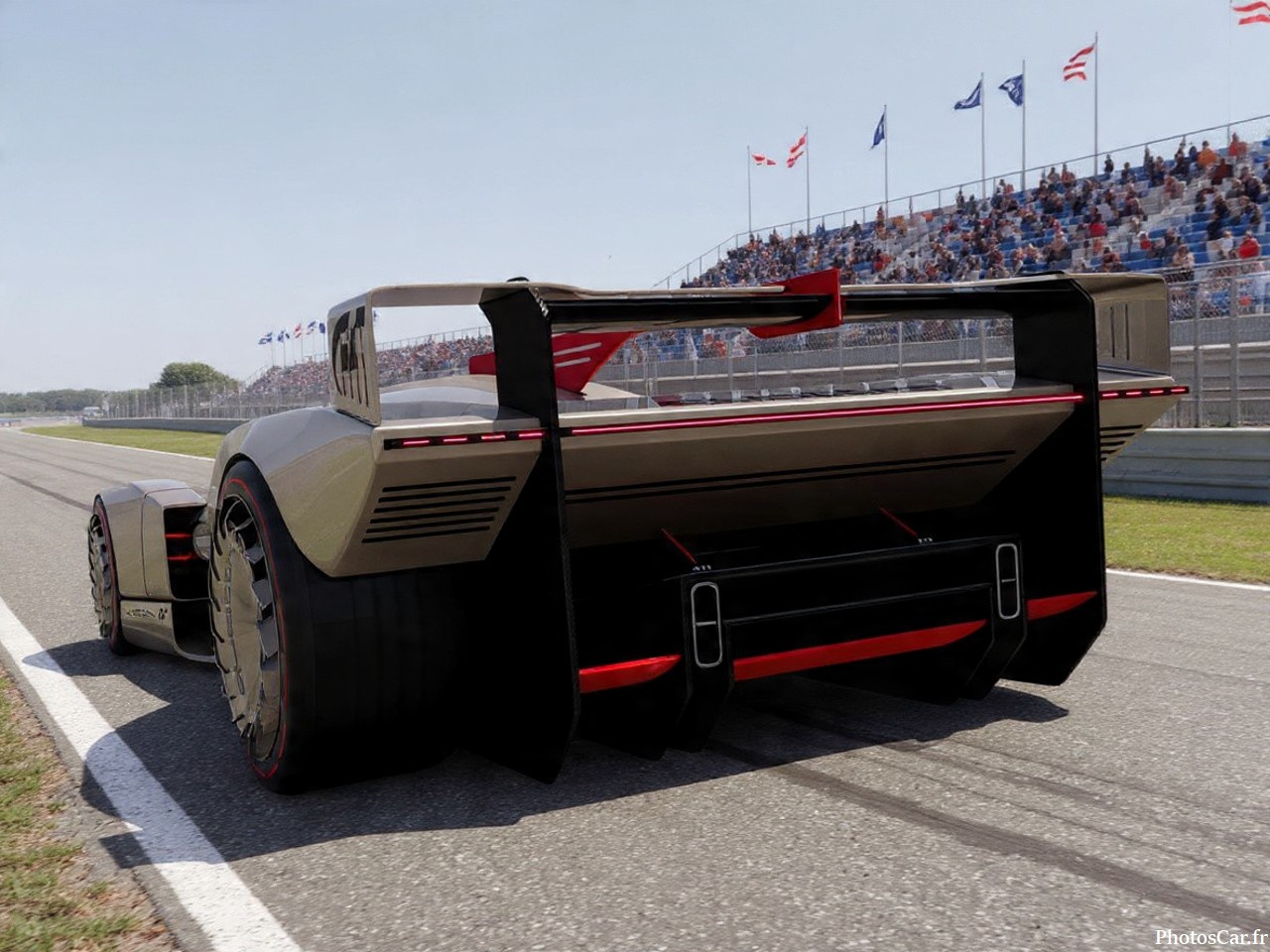 Le design de l’Audi 20quattro Vision GT, c’est du grand spectacle. Dès le premier regard, tu sens que cette voiture ne joue pas dans la même cour. Avec ses lignes tranchantes, ses ailes sculptées et son profil aérodynamique, elle semble tout droit sortie d’un film de science-fiction. Pourtant, elle s’inspire clairement de l’Audi 90 IMSA GTO, une légende du sport auto. Les entrées d’air massives, les jantes ultra larges et les feux LED futuristes renforcent son look agressif. Et pour ne rien gâcher, elle arbore une signature lumineuse qui claque. Bref, elle ne passe pas inaperçue, même dans un jeu vidéo. Ce design, c’est une claque visuelle, un manifeste stylistique qui dit : “Je suis l’avenir, et je le sais.”