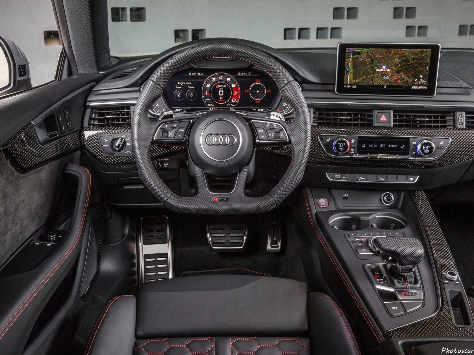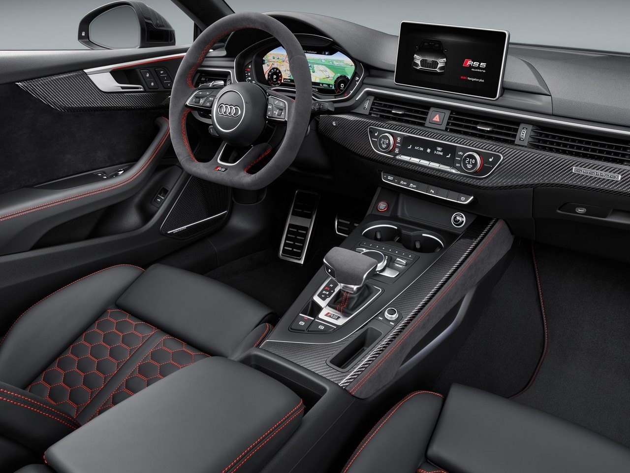 L’Audi RS5 utilise deux turbocompresseurs positionnés entre les rangées de cylindres, tout comme les modèles Mercedes-AMG. L’unité de 2,9 litres utilise une course de compression plus courte pour une meilleure efficacité. Aussi le biturbo V6 ne consomme que 8,7 litres de carburant par 100 kilomètres (27,0 US mpg). Le poids est de 60 kg de moins que le modèle précédent, pencher la balance à 1655 kg. Site officiel Audi