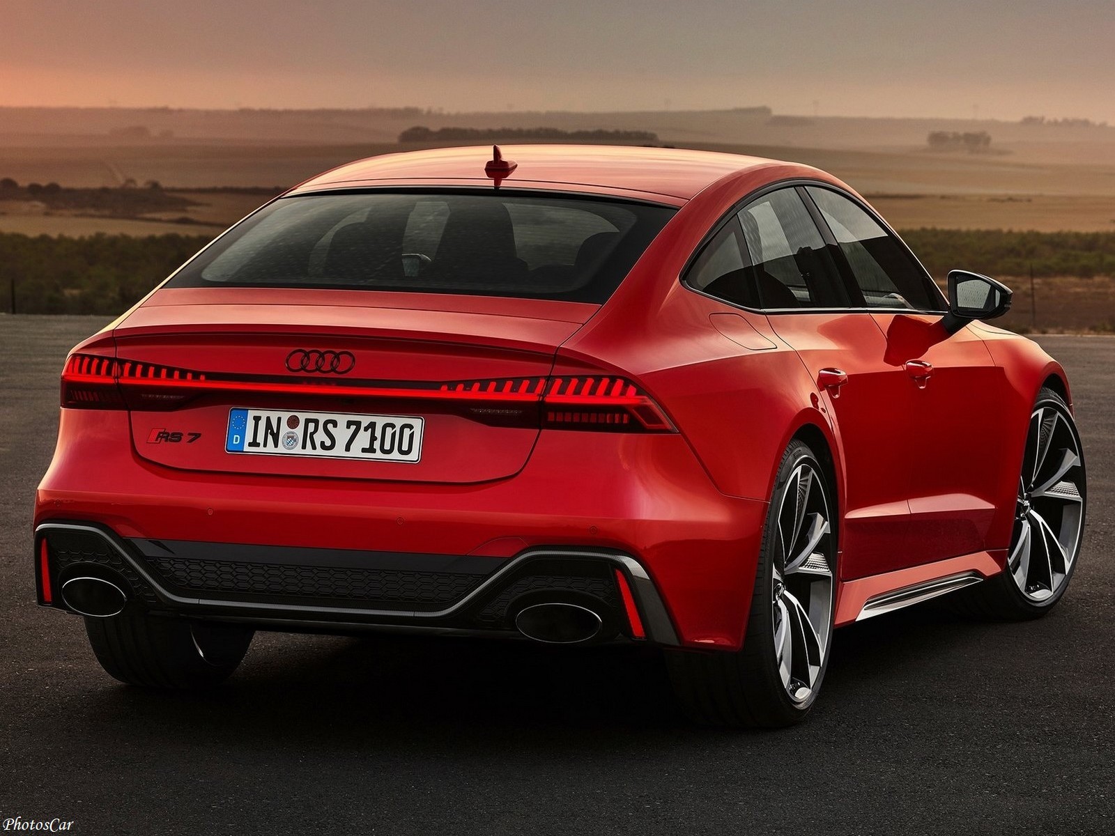Un spoiler arrière adaptatif se déploie hors de la carrosserie à une vitesse supérieure à 120 km/h. Les sorties d’échappement massives de forme ovale sont typiques des modèles RS d’Audi. Elles font saillie de l’élément diffuseur dans le pare-chocs arrière.