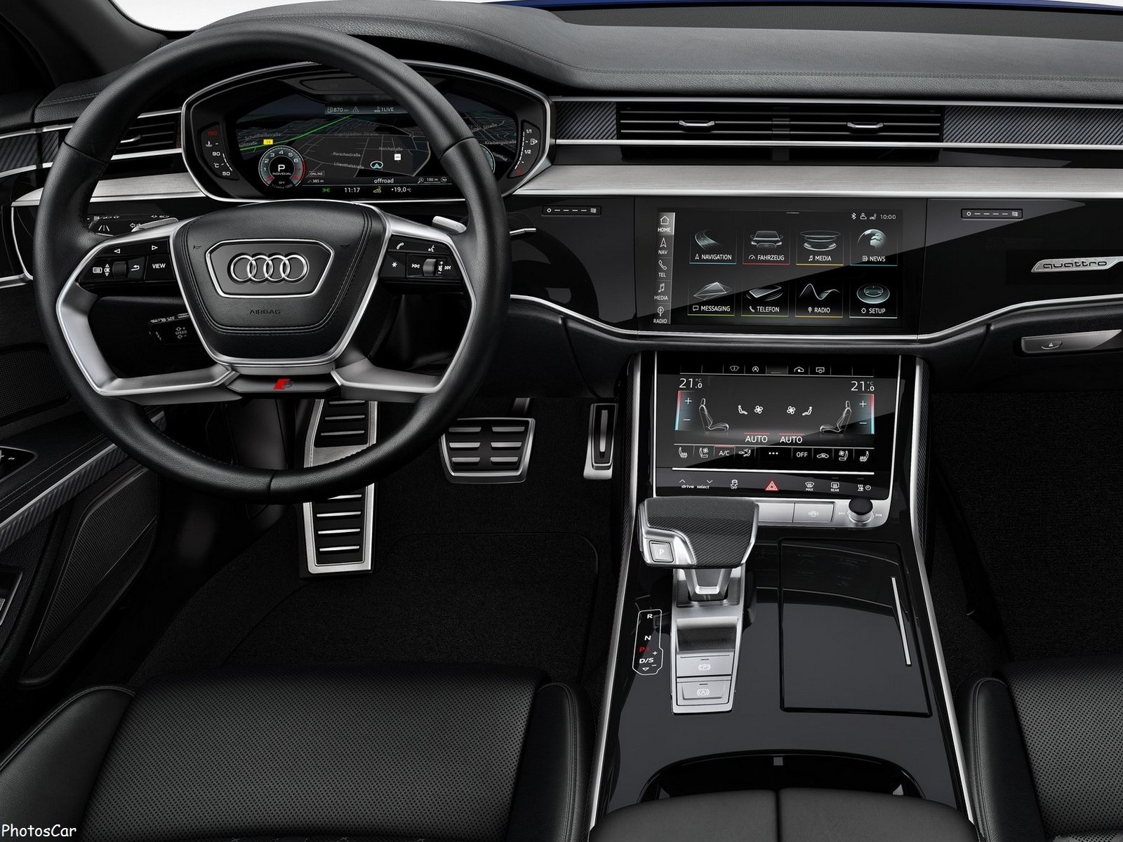 La connectivité joue également un rôle important dans la nouvelle Audi S8 2020 , car elle offre le système MMI Touch et un panneau de commande entièrement numérique. Il comprend également des commandes à commande vocale et des séries d’assistants Alexa! auxquelles s’ajoutent l’affichage tête haute, un système de charge par induction pour smartphones; un équipement audio « premium » de la marque Bang & Olufsen ou le système MMI. Navigation Plus avec des services connectés tels que la circulation en temps réel; les informations de stationnement à la destination ou les feux de signalisation. Site officiel Audi