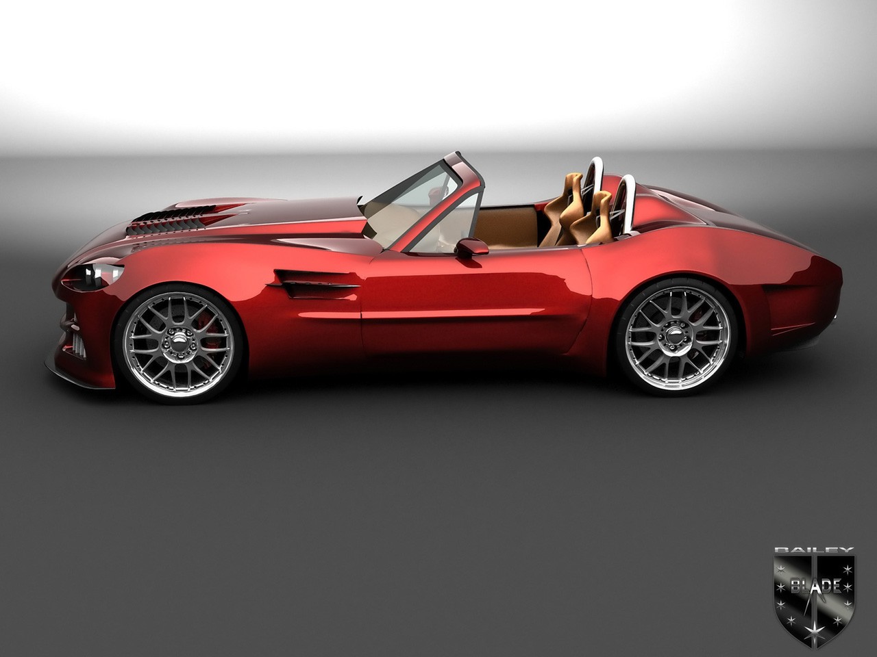 Le Blade est_avant tout un hommage à la fameuse Cobra Shelby. L’inspiration du Concept Blade est en prise directe avec la Cobra Shelby. J’ai toujours rêvé de posséder cette voiture mais finalement, c’est amusant, car c’est immédiatement après que je m’en suis acheté une réplique que j’ai pris la décision de concevoir ma propre voiture. Et alors, Bailey a mis les petits plats dans les grands. Châssis tubulaire, suspensions indépendantes paramétrables, carrosserie ultra-légère… l’ancien et le moderne en osmose en somme.Petit clin d’oeil au slr.