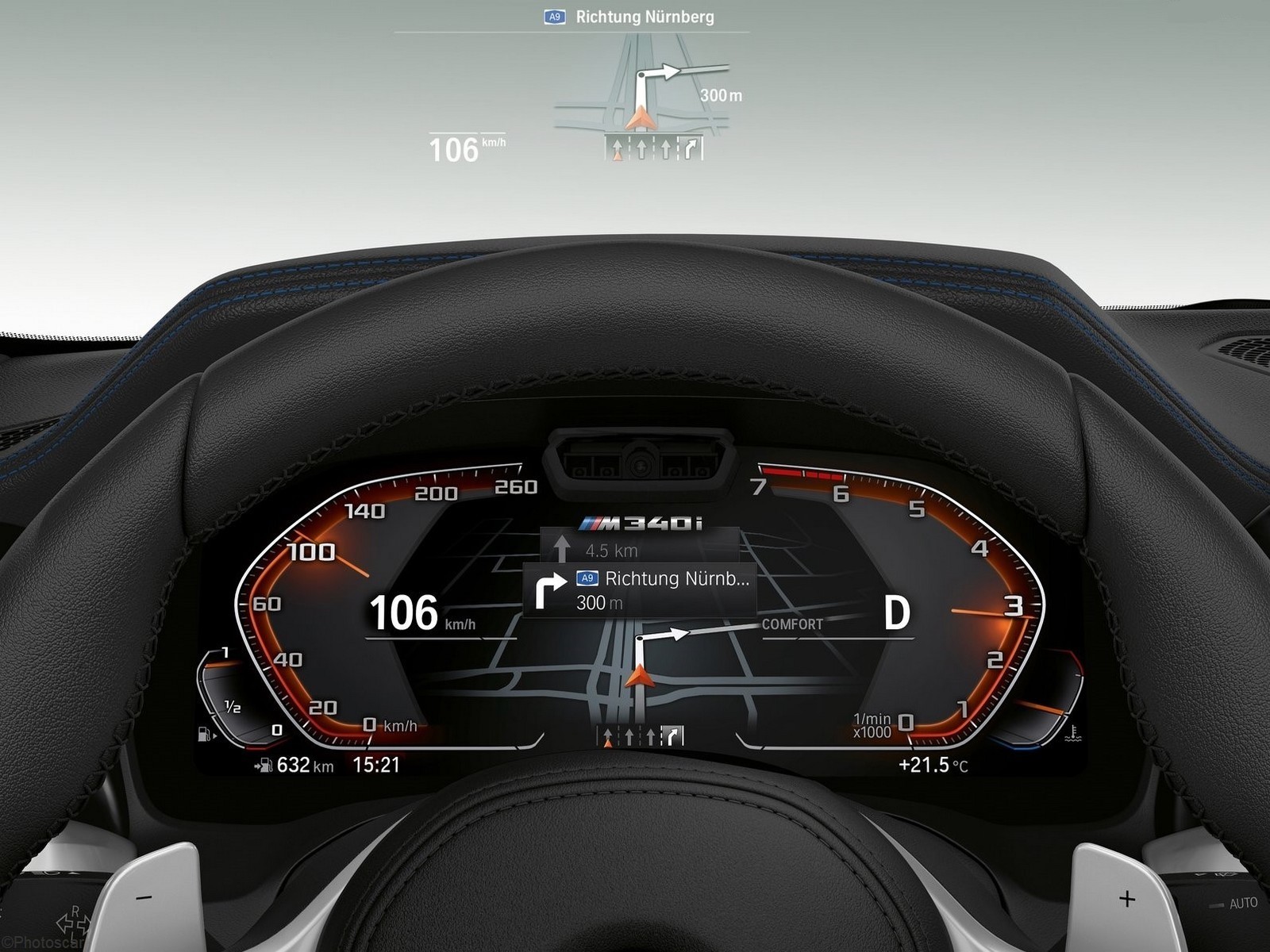 Live Cockpit Professional comprend un tableau de bord numérique de 12,3 « et un écran d’information central de 10,25 ». Le conducteur pilote le système iDrive 7.0 à entrées multiples via la commande vocale, l’écran tactile ou le contrôleur de pavé tactile. La navigation, le Bluetooth, deux ports USB, 8 signets librement programmables et des mises à jour en direct (OTA) pour les données cartographiques jusqu’à 4 fois par an sont également inclus