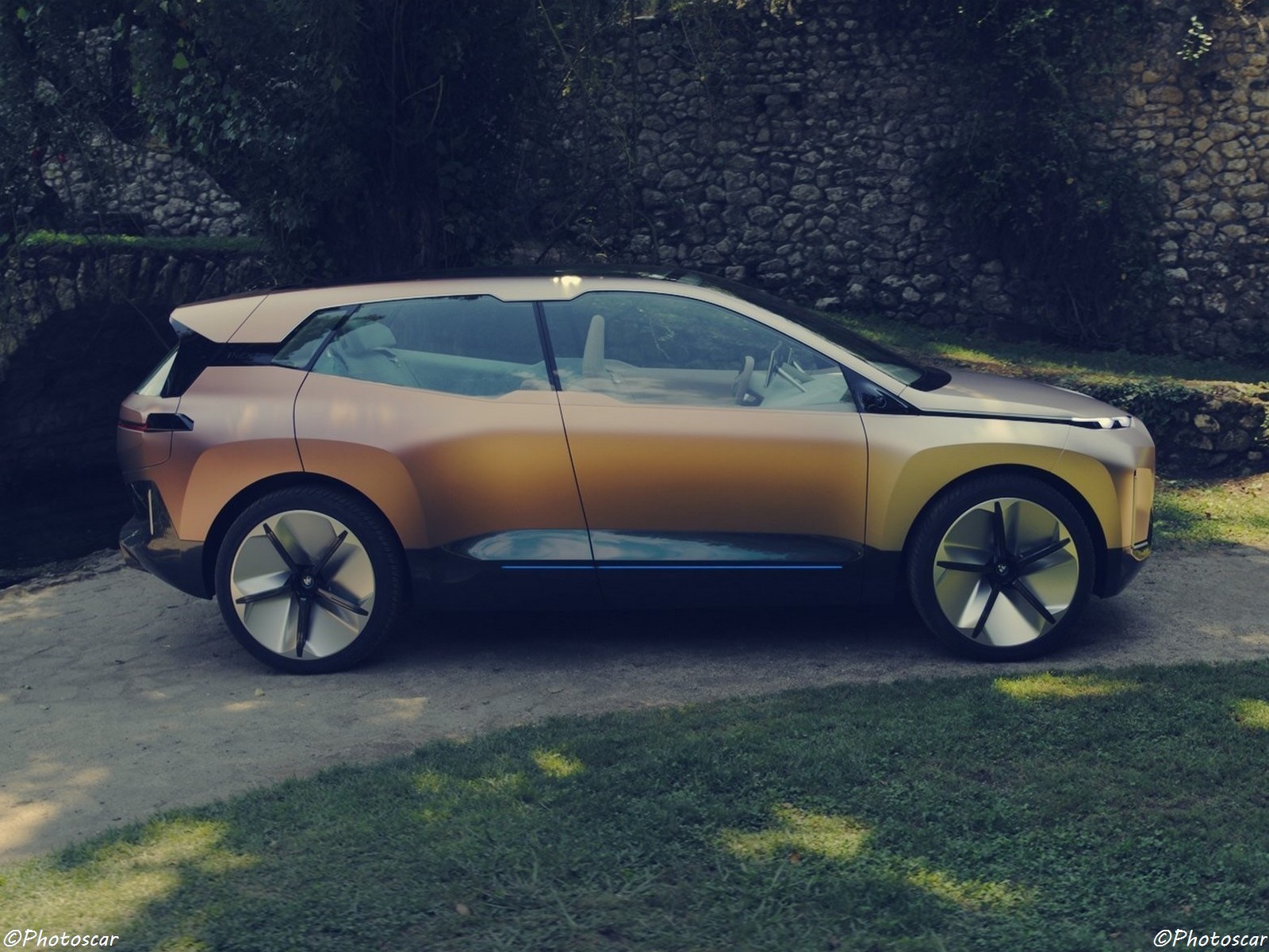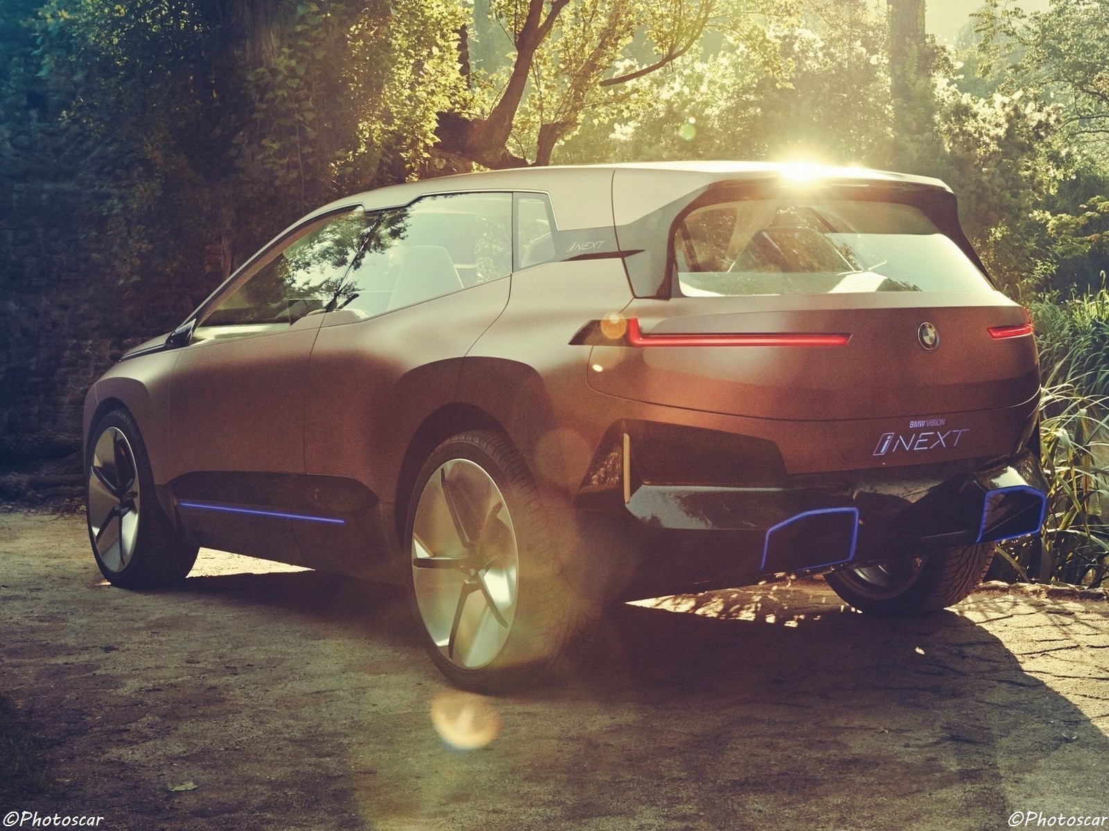 La BMW iNEXT a une taille et des proportions SAV modernes, avec des formes et des surfaces clairement sculptées. Il présente le style BMW i emblématique de la BMW i Vision Dynamics 2017, avec une grande calandre réniforme, un graphisme de fenêtre emblématique et des accents bleus à l’avant, sur les côtés et à l’arrière. Les accents bleus s’allument lorsque le véhicule est déverrouillé, accentuant ses lignes accrocheuses. Les grandes fenêtres et les lumières s’intègrent parfaitement dans la conception, apparaissant comme des incrustations complexes.