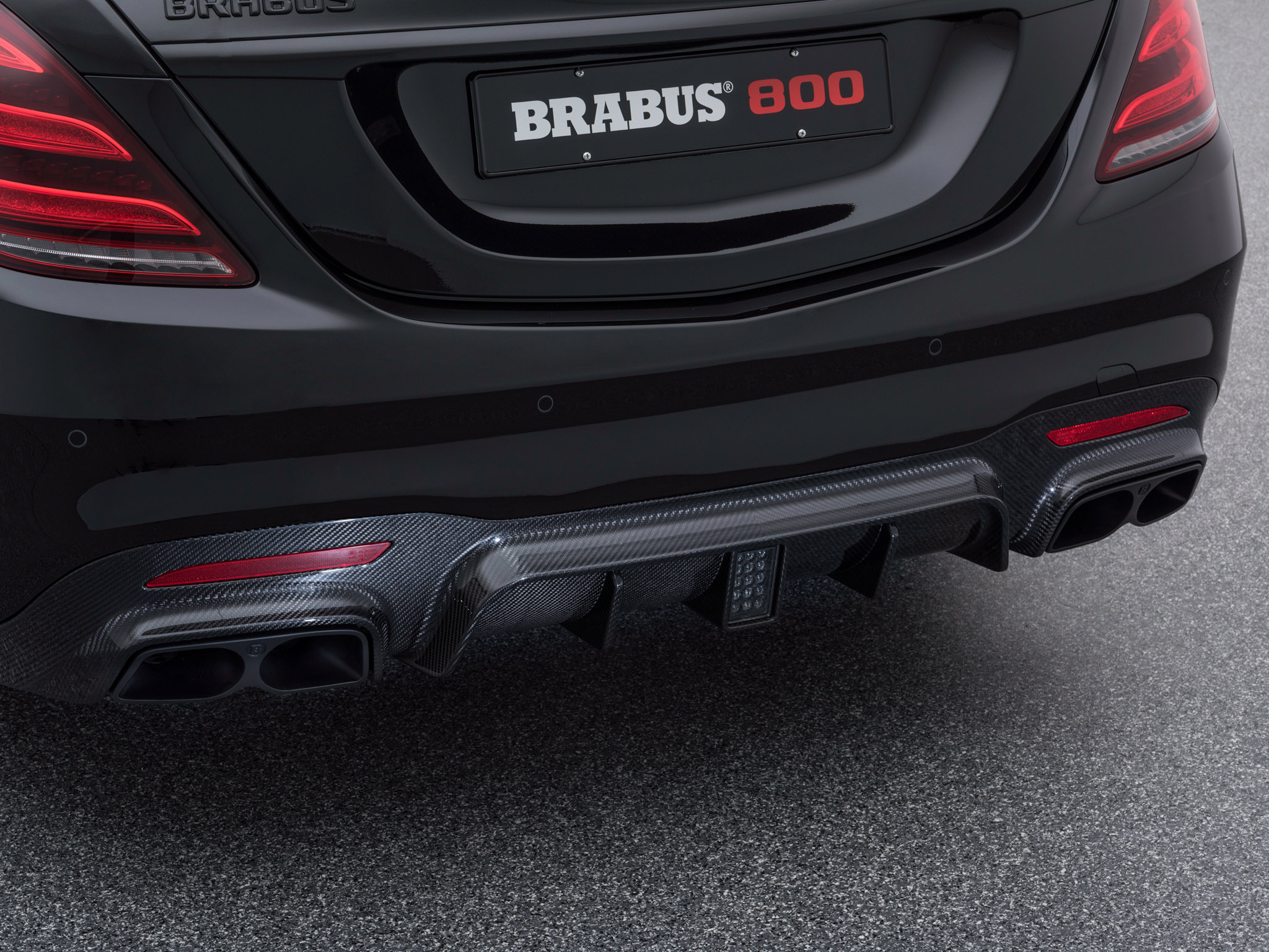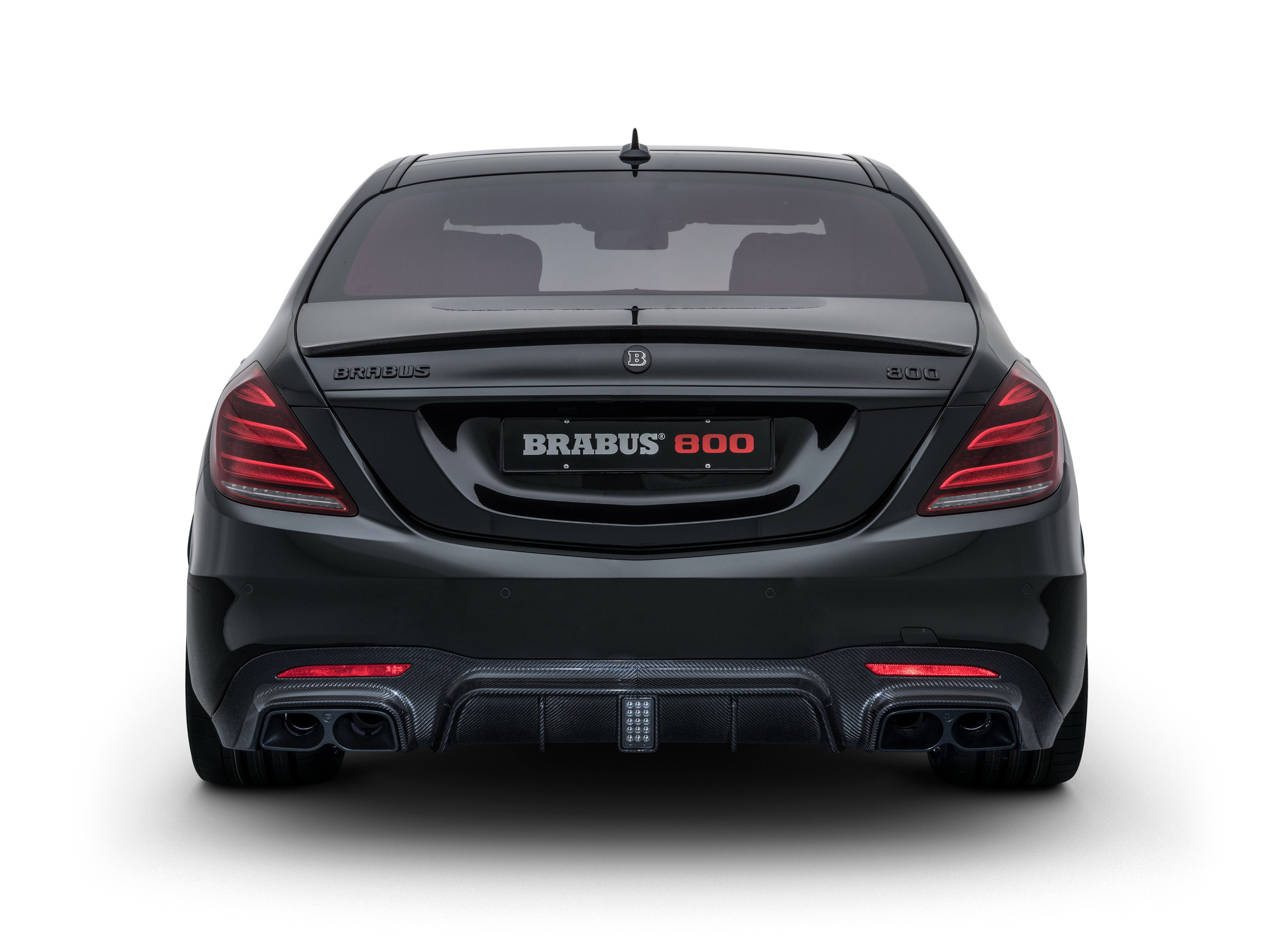 En plus du diffuseur revêtu de carbone avec des sorties adaptées pour l’échappement sport; la Brabus 800 berline S-classe (2018) comporte également des roues de conception sur mesure dans différents choix. L’insert plus profondément le corps du véhicule par un maximum de 15 millimètres. Les points forts optiques de l’intérieur incluent la tapisserie d’ameublement en cuir respirable, les éléments réels de fibre de carbone dans l’habitacle et les inlays de bois. Fonctionnel est également la console de centre d’affaires, à partir de laquelle pour chaque siège arrière une table peut_être prolongée.