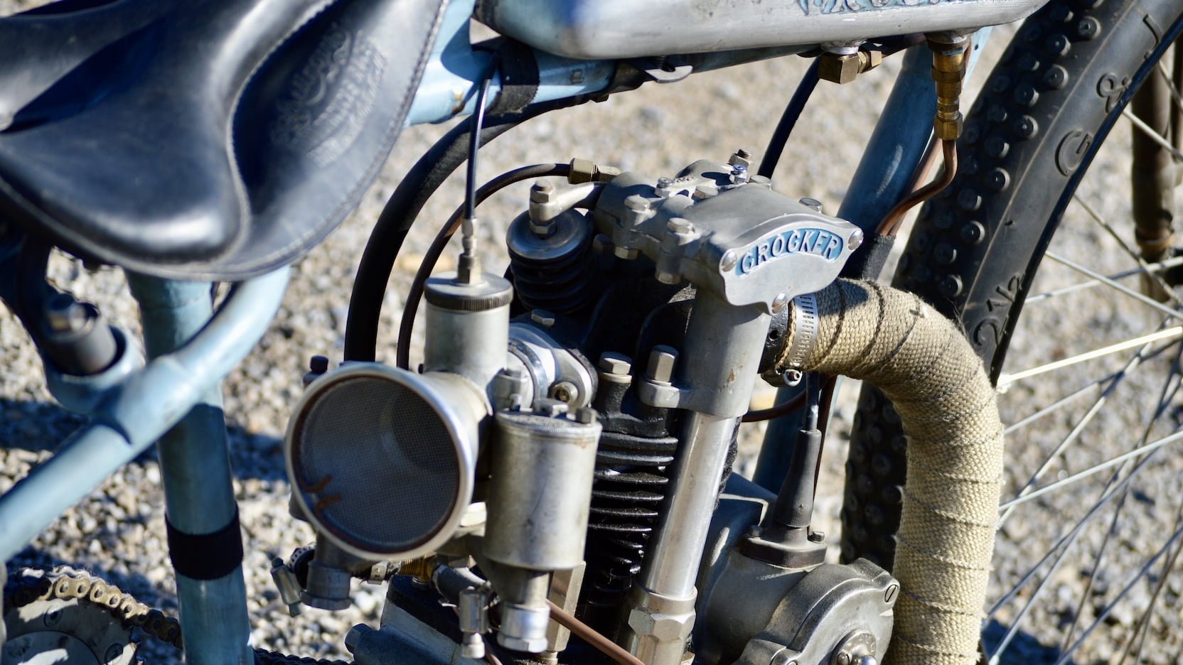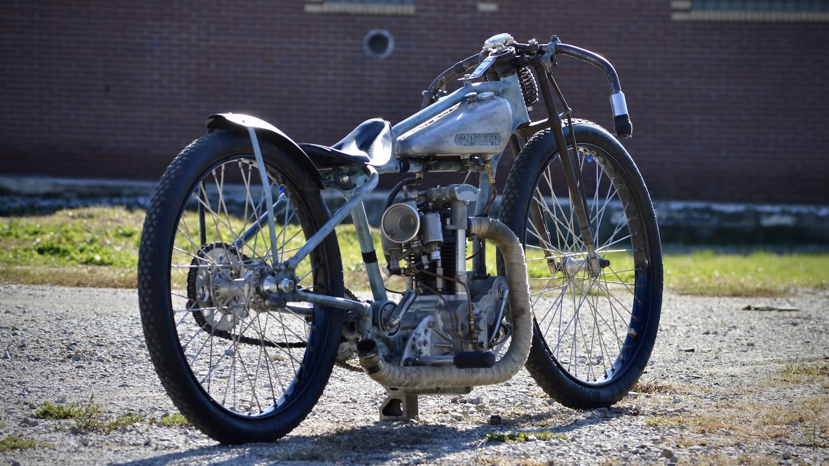 Avec des installations de production limitées, seuls 31 modèles Crocker Speedway ont_été vendus. Crocker a construit une paire de prototypes OHC Speedway en 1936. Cela pour contrer la marée montante du moteur JAP Speedway de 42 CV! mais il était clair que son moteur OHC Speedway aurait besoin d’être développé. Plutôt que de continuer avec les courses de Speedway! Al Crocker s’est tourné vers le projet qui allait graver son nom dans la pierre: le gros bicylindre en V. Ce bolide super rare – configuré pour la course sur alcool! en utilisant un carburateur Amal Type 27 Speedway avec deux flotteurs.