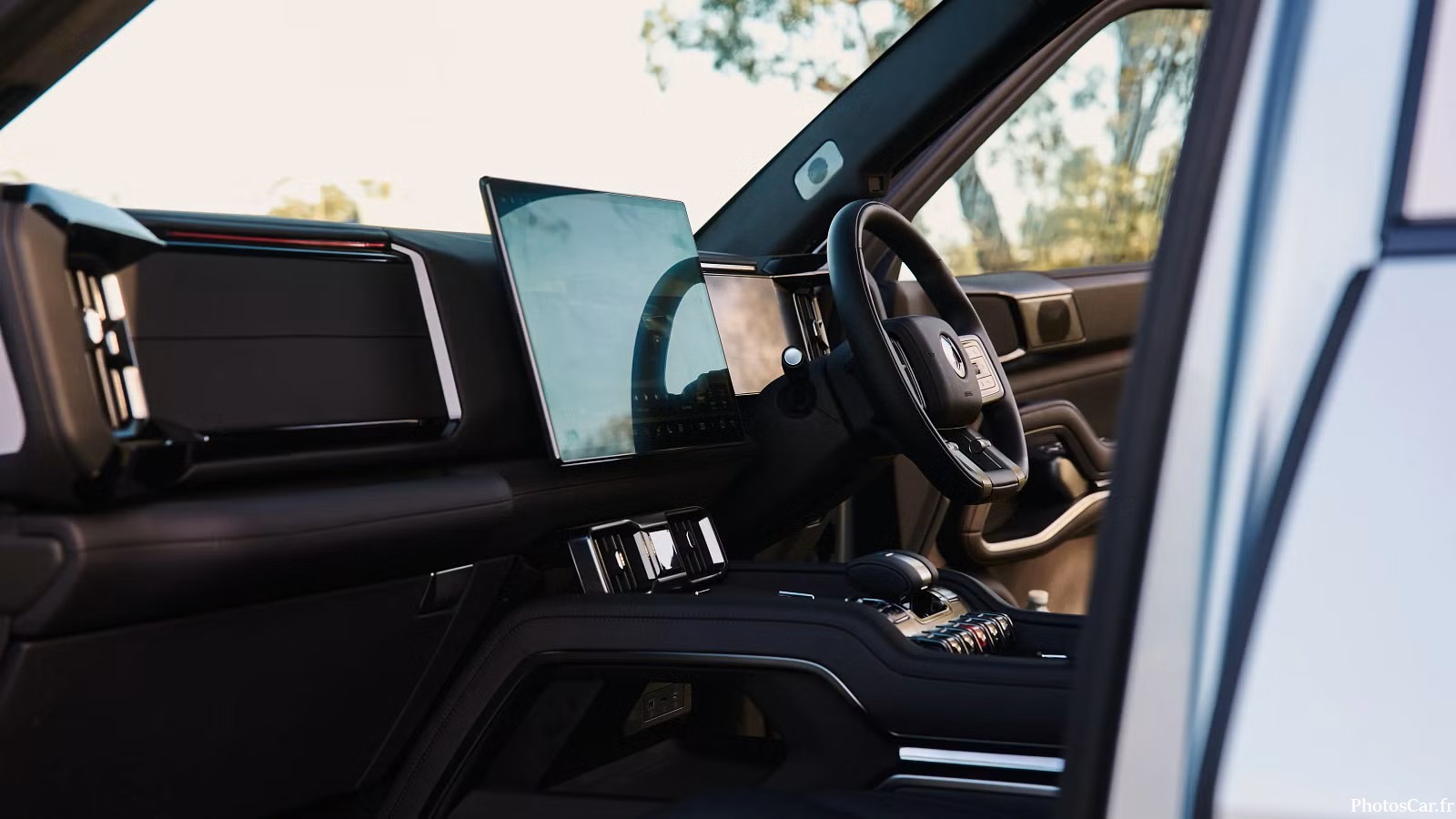 Faut le dire franchement, le Denza B5 2026 a une gueule. Avec ses 5,06 mètres de long, ses 1,99 mètre de large et ses 1,86 mètre de haut, il ne passe pas inaperçu. Son style rappelle un peu le Land Rover Defender, mais avec une touche plus moderne et raffinée. Les lignes sont tendues, les arches de roues bien marquées, et la calandre massive donne le ton. On sent que le design a été bossé pour séduire autant les amateurs de franchissement que les fans de SUV urbains. En clair, il a le look d’un baroudeur, mais sans tomber dans le cliché du 4×4 rustique. Et ça, c’est plutôt malin.