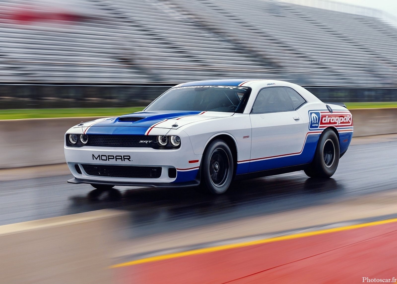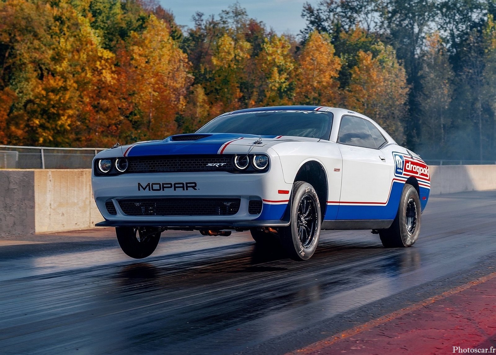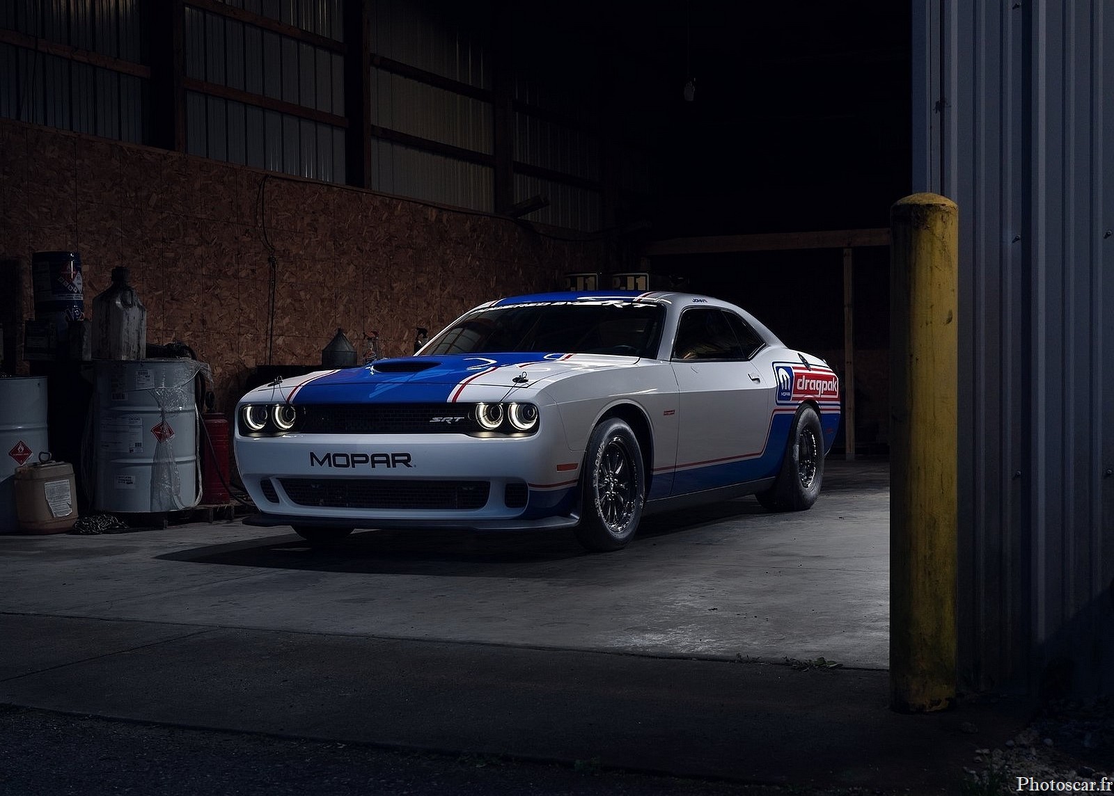 La Dodge Challenger Mopar Drag Pak, la plus rapide et la plus puissante jamais conçue. Proposés via Mopar, les Challenger Drag Paks sont des drag racers dédiés et clés en main conçus pour les cours de la National Hot Rod Association et de la National Muscle Car Association. Cela signifie qu’ils reçoivent une cage de protection complète fabriquée selon les spécifications de la NHRA et de la NMCA, ainsi que d’autres équipements de sécurité obligatoires.