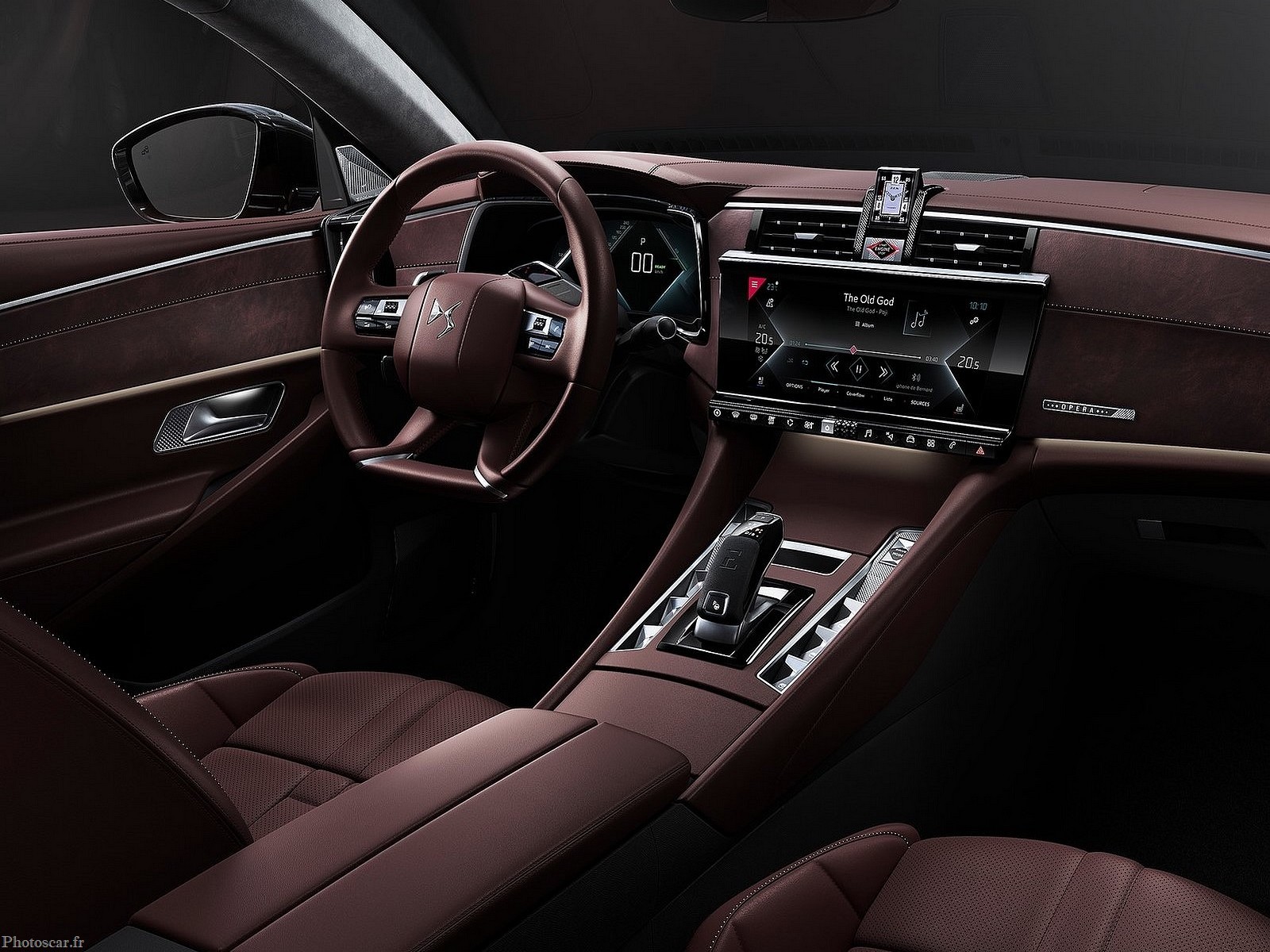 L’intérieur de la DS9 2021 répond à une prémisse. Il s’agit d’offrir un voyage en première classe à tous les occupants du véhicule. La cabine est_recouverte de cuir Napa et est continue par rapport à la DS7 Crossback. Cela se traduit pour des raisons pratiques par deux grands écrans numériques. Un sélecteur de vitesse ergonomique est inclus. La montre caractéristique illustre l’entreprise française.