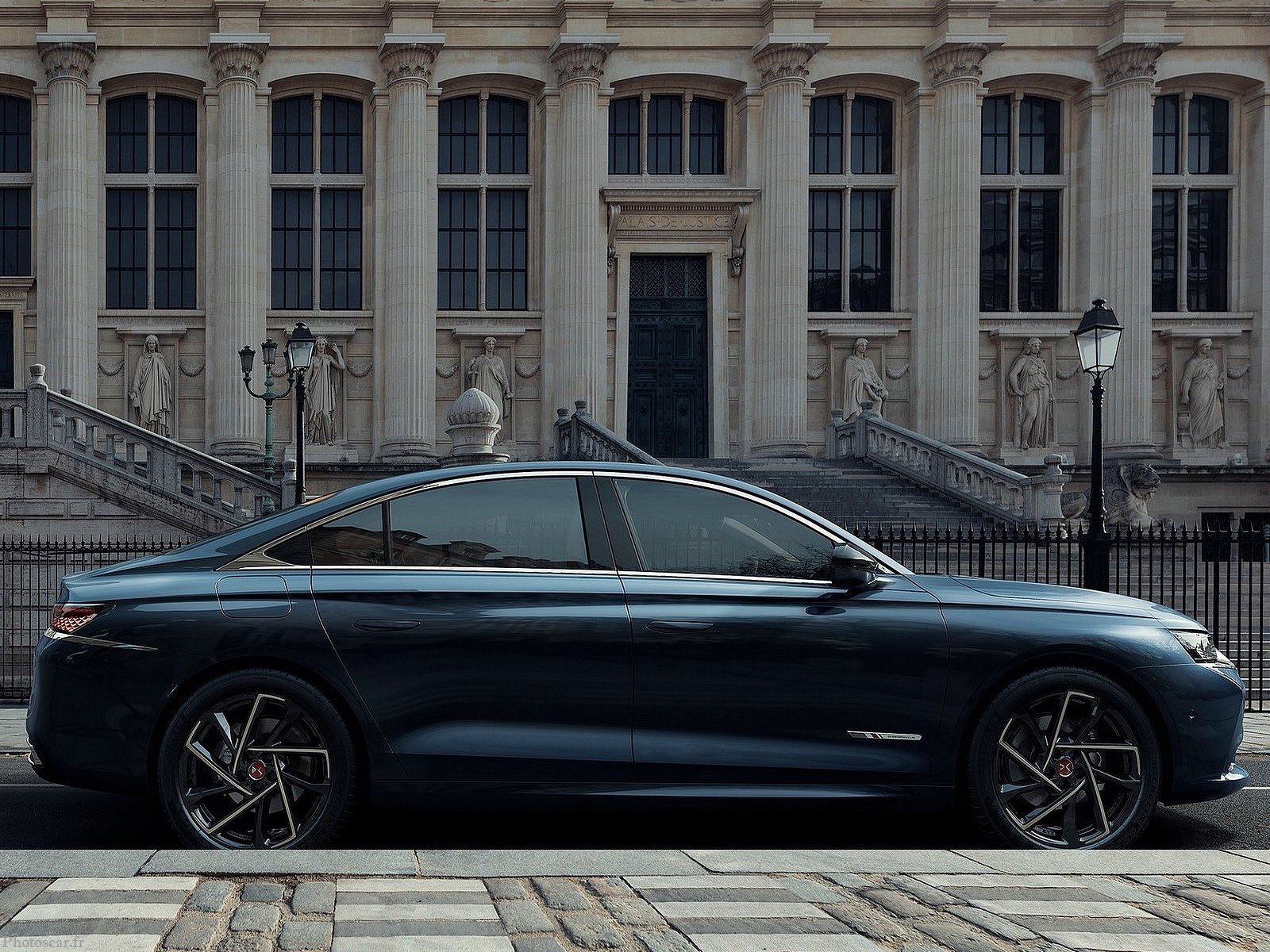 À l’arrière, la DS9 adopte le même style que nous avons vu dans des modèles. Cela inclut des voitures telles que la DS 7 Crossback. Des phares fins et tranchants avec un motif rhomboïdal apportent la touche premium caractéristique de la marque. Cependant, le résultat peut rappeler une Mercedes-Benz. Le diffuseur et les échappements sont finis dans les détails chromés! se différenciant ainsi de la ligne vue dans la Peugeot 508 pour se rapprocher du monde élitiste.