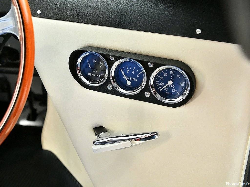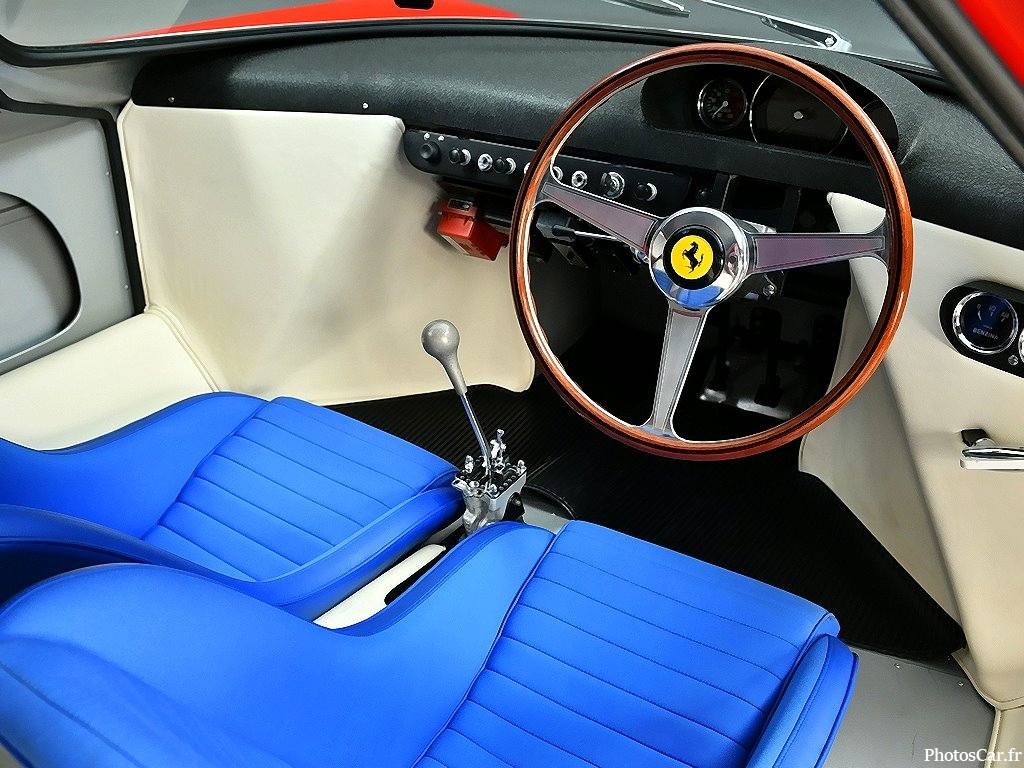 L’intérieur de la Ferrari 250 LM, c’est pas du luxe à la allemande. C’est du pur racing. Pas de gadgets, pas de cuir à foison, juste l’essentiel pour piloter. Le tableau de bord est simple, fonctionnel, avec des compteurs bien visibles. Le volant en bois, large et fin, te connecte direct à la route.