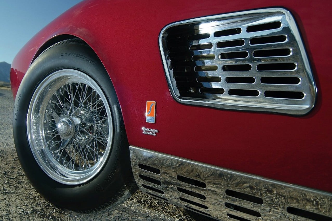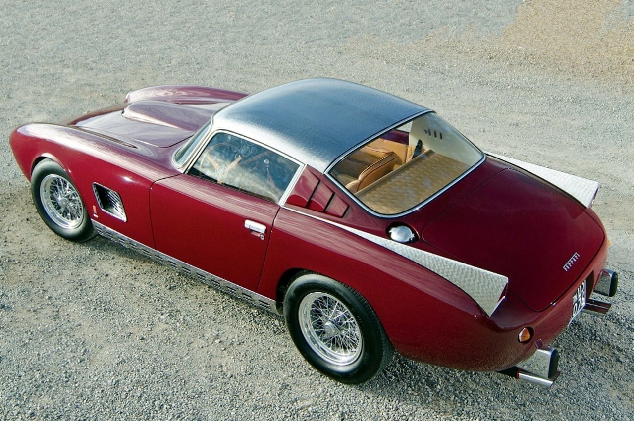 Le principal fabricant des carrosseries de compétition Ferrari de l’époque, Scaglietti, a également habillé un exemplaire doté d’un châssis 0671SA. Celui-ci présentait également des ailettes. (adaptées au goût américain, puisque l’essentiel de ces véhicules était_destiné à ce marché). Mais aussi des panneaux de toit, de seuil et d’ailette en acier brut. Ceux-ci contrastaient avec le rouge foncé de la carrosserie.