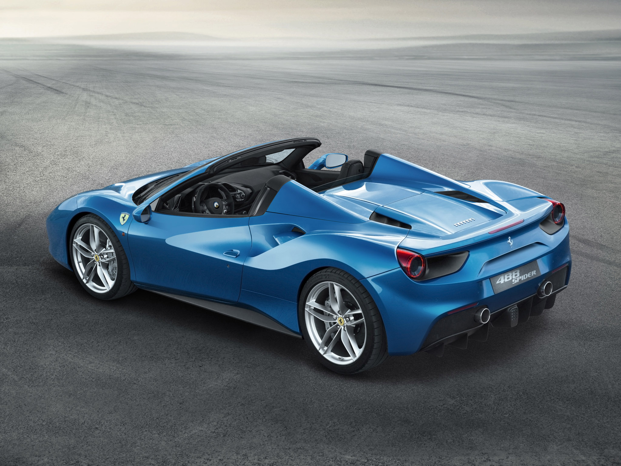 Comme son nom l’indique, la 488 Spider est la version cabriolet de la Ferrari 488 GTB. Contrairement à la tendance actuelle qui est à la capote en toile, la 488 Spider dispose d’un toit en dur. C’est le même système qui équipait la Ferrari 458 Spider : le toit pivote vers l’arrière pour venir se ranger à plat sous le capot moteur. La manoeuvre s’opère en seulement 14 secondes, ce qui est bien plus rapide qu’un toit escamotable classique (plus de 20 secondes).