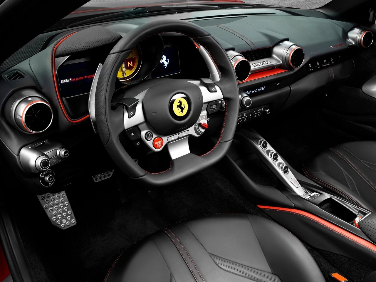 Selon Ferrari, la 812 rappelle l’histoire du V12, et F12berlinetta F12tdf, mais sa conception « fastback » se réfère à un autre classique, la 365 GTB4, 1969. Mais aucun d’entre eux avaient des lumières a LED, tels que la Superfast. A l’intérieur, le cuir, l’aluminium et d’autres matériaux nobles montrent une voiture de luxe. Ainsi le compte-tours est toujours analogique, montrant que Ferrari n’a pas cédé aux panneaux entièrement numériques avec écran TFT.