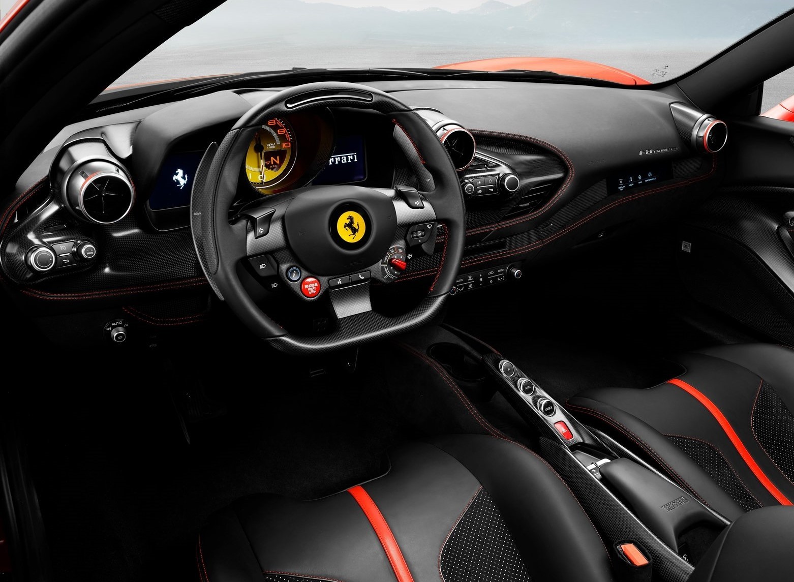 L’agencement intérieur sera familier à quiconque a été dans un 488 ou un prédécesseur de la voiture 458. Cependant, presque tous les éléments du tableau de bord, des panneaux de porte et de la console centrale sont nouveaux! de même que le système d’infodivertissement qui comprend un écran tactile de 7,0 pouces pour le passager. La conception de la ventilation est également nouvelle et le volant a été réduit.