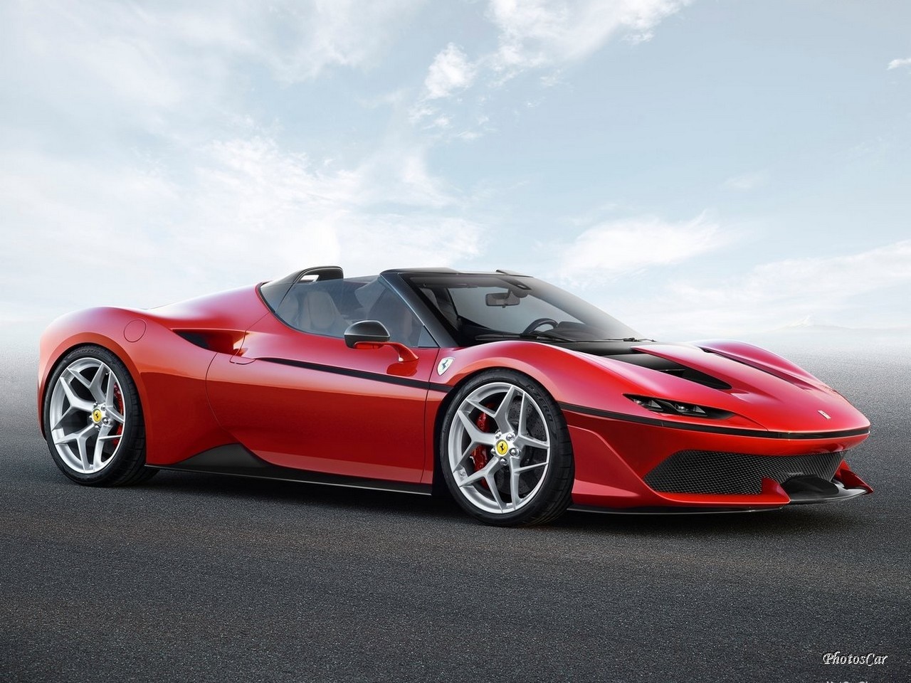La Ferrari J50 présenté lors du lancement à Tokyo est_fini dans une teinte particulière. Effectivement trois couches rouge avec un intérieur rouge-over noir garni de cuir fin et Alcantara. Site officiel Ferrari