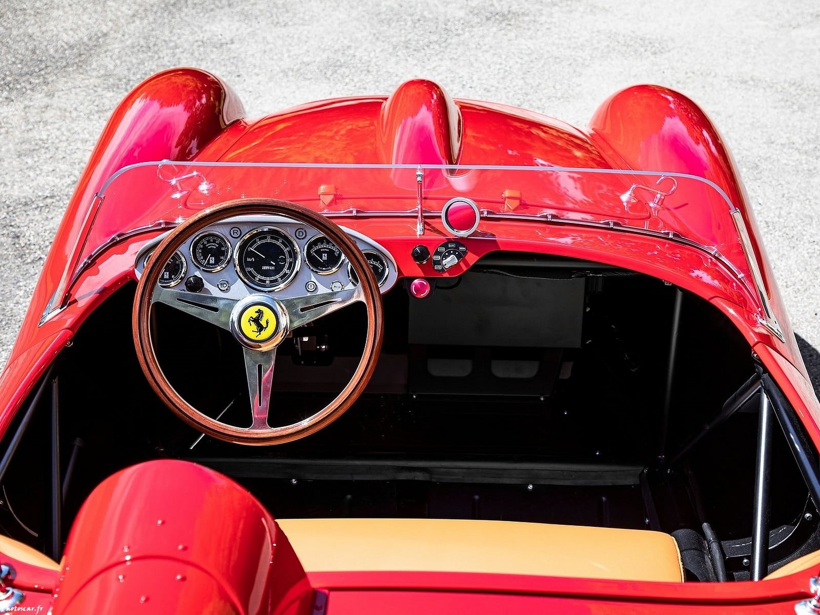 Passant à l’intérieur, le tunnel de transmission a_été supprimé et les deux sièges d’origine remplacés par des sièges pouvant accueillir un adulte et un junior. Même le même motif de passepoil que les sièges d’origine – reproduit par le Centro Stile sur la Ferrari Testa Rossa J. Pour garantir que la qualité de l’intérieur corresponde à la beauté de l’extérieur, le cuir utilisé pour les sièges est le même que celui utilisé sur Les voitures de la gamme moderne de Ferrari. Le volant – fourni par Nardi! comme le volant de la voiture d’origine! avec lequel le système de déverrouillage rapide du volant le plus petit au monde – développé pour faciliter l’entrée facile dans la voiture pour le conducteur.