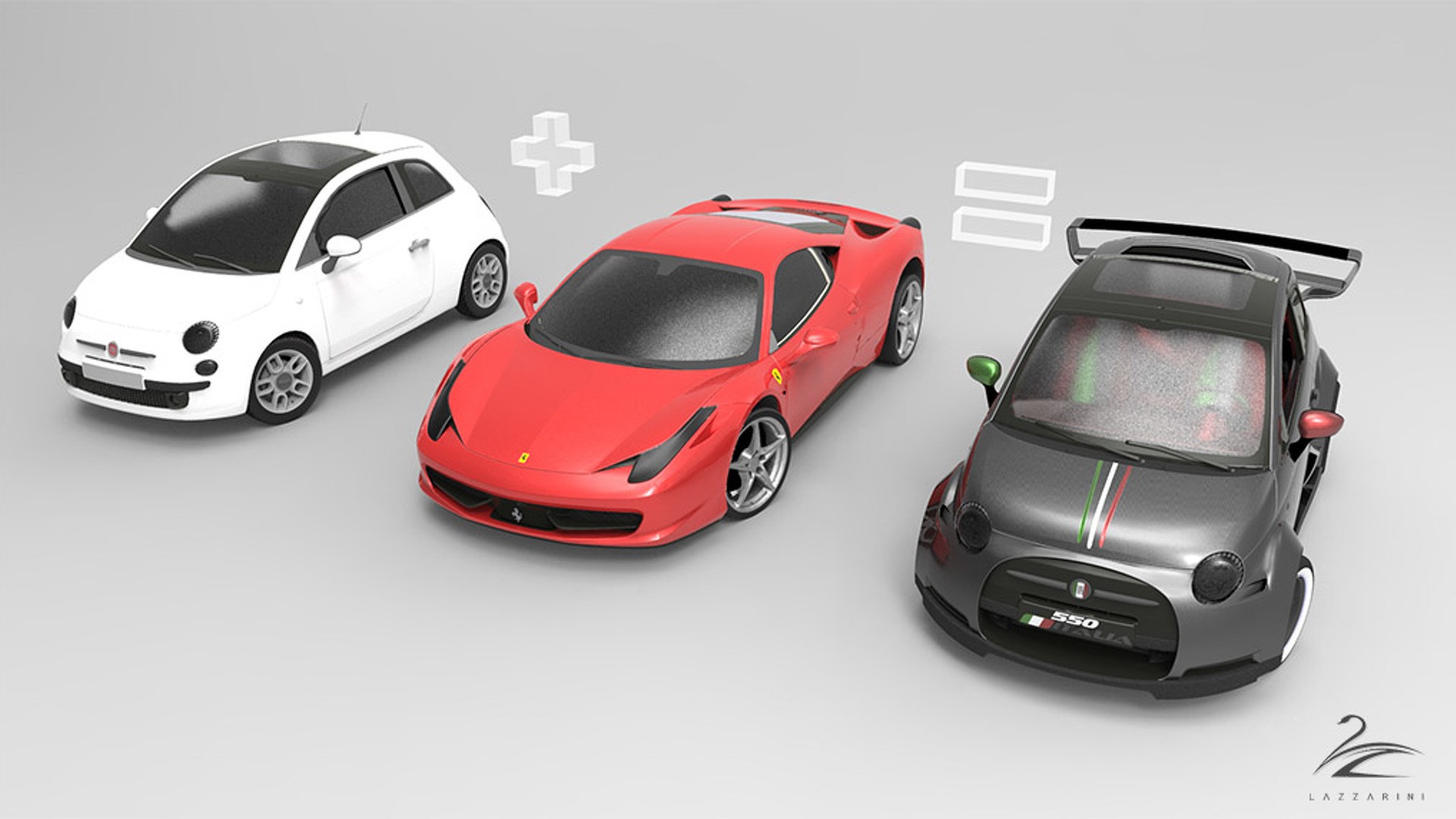 Fiat 550 Italia Lazzarini : L’extérieur de la Fiat 500 et l’intérieur de la Ferrari 458.