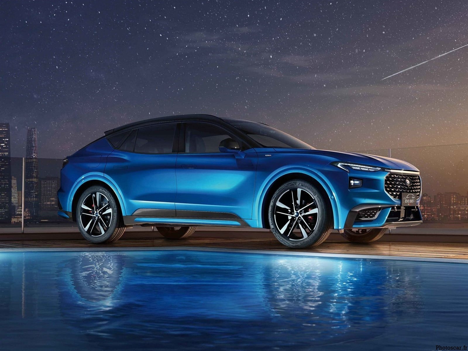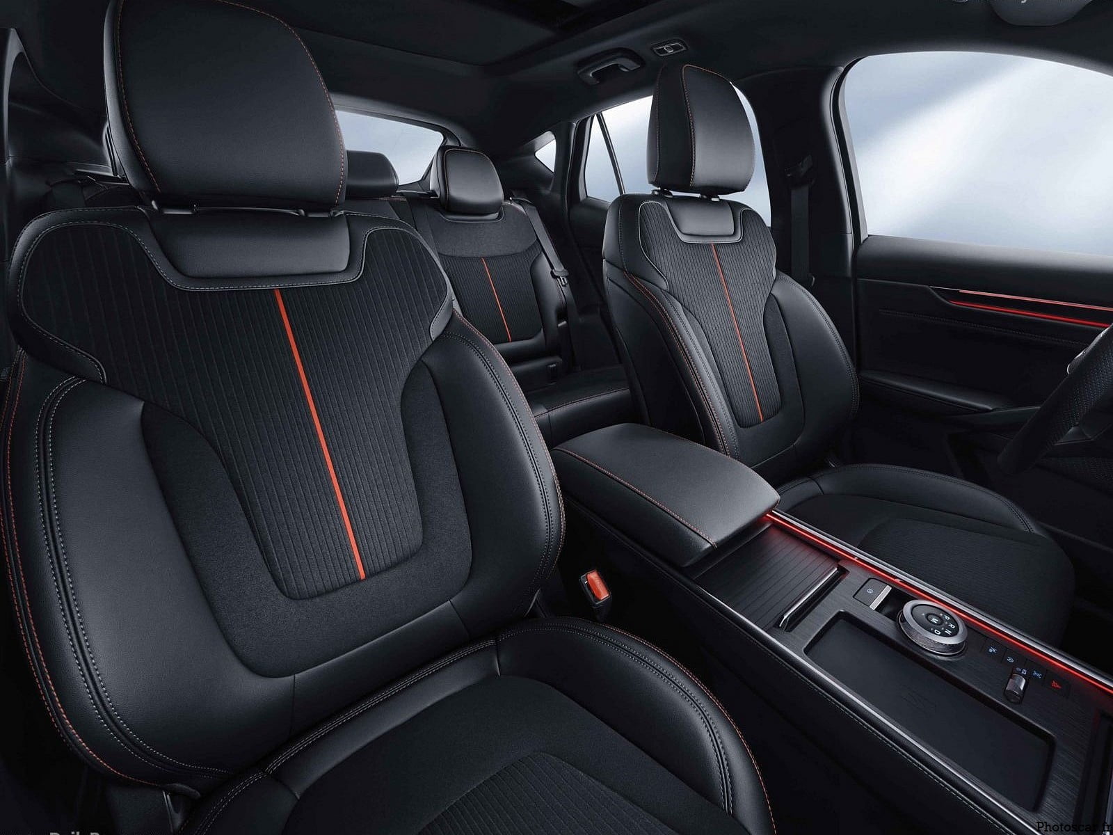 Côté carrosserie, la nouvelle voiture utilise une carrosserie bicolore et crée un effet de toit caché. La forme générale est un style de coupé crossover slip-back. La sensation musculaire globale sur le côté est très évidente. Equipé de roues doubles à cinq branches et rouges. Les étriers de frein renforcent encore la sensation sportive de la nouvelle voiture.