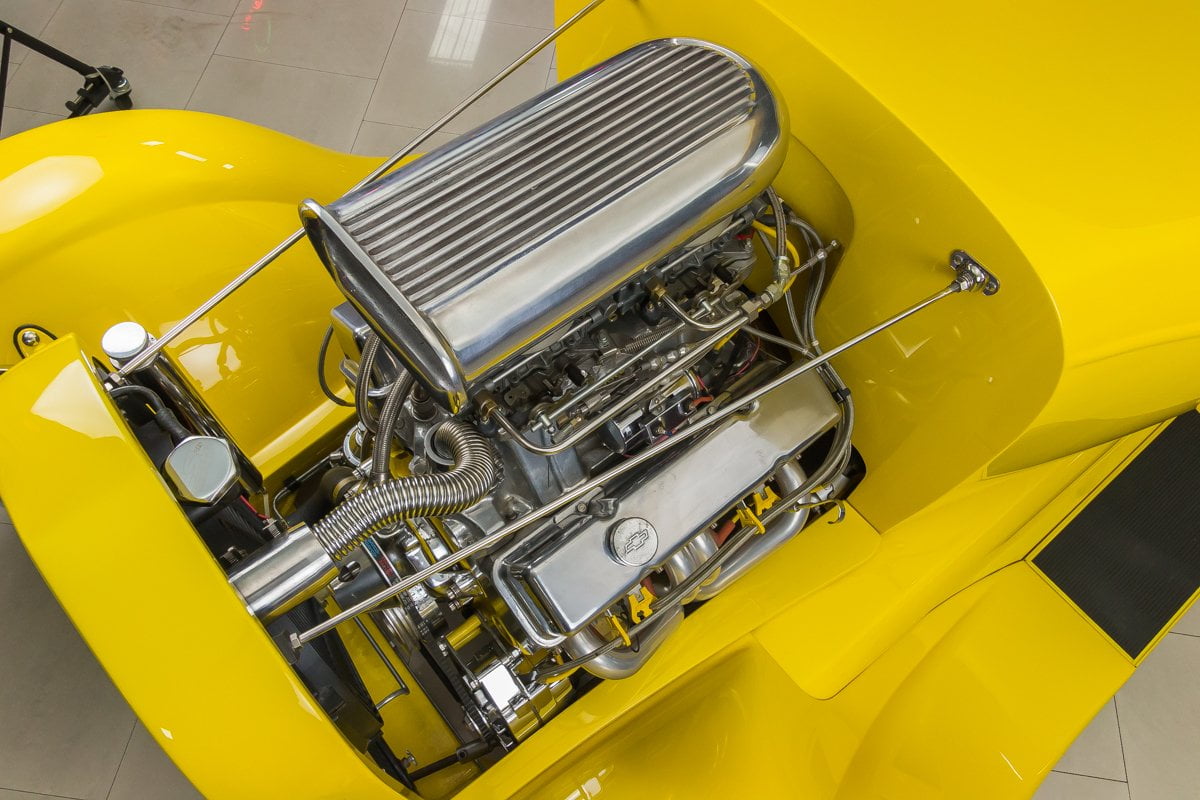La puissance est donnée à cette berline grâce à l’utilisation d’un moteur V8 350ci, deux Holleys 450 CFM , une transmission automatique 700R4 et de nombreuses modifications. En dessous, tout est peint pour correspondre à la partie supérieure de la voiture: composants de suspension, carrosserie, cadre, arbre de transmission, vous l’appelez. L’intérieur est quelque chose que les mots rendent difficile à décrire; un rembourrage personnalisé se trouve partout, même au plafond, et des jauges personnalisées, la colonne de direction et le levier de vitesses Lokar décorent la cabine. Source