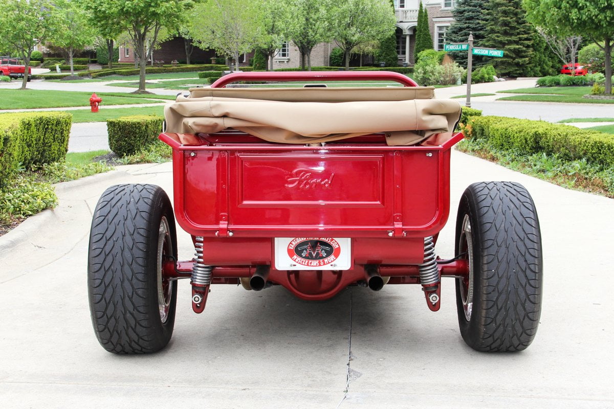 2 portes Roadster Pickup Body. Model A Tudor Cowl. Portes fabriquées à la main, corps arrière, capot et lit. Corps en acier étiré 12 « . Belles. Fenêtres à enroulement de peinture« Corvette Inferno Red ». Fabriquées à la main, le dessus rabattable est complètement amovible. Belles lèvres de porte ajustées et finies et les jambages sont propres et solides. Ouverture de lit à charnière pour boîte à outils et rangement. Cadre magnifiquement peint Correspond à la carrosserie Roues d’introduction de train de roulement très détaillées, avant de 16 po, arrière de 18 po BF Goodrich 205/50/16 avant, pneus arrière 285/60/18