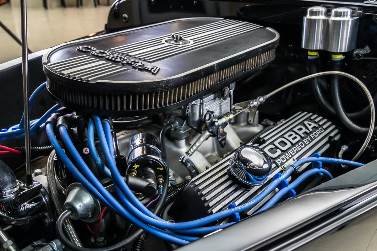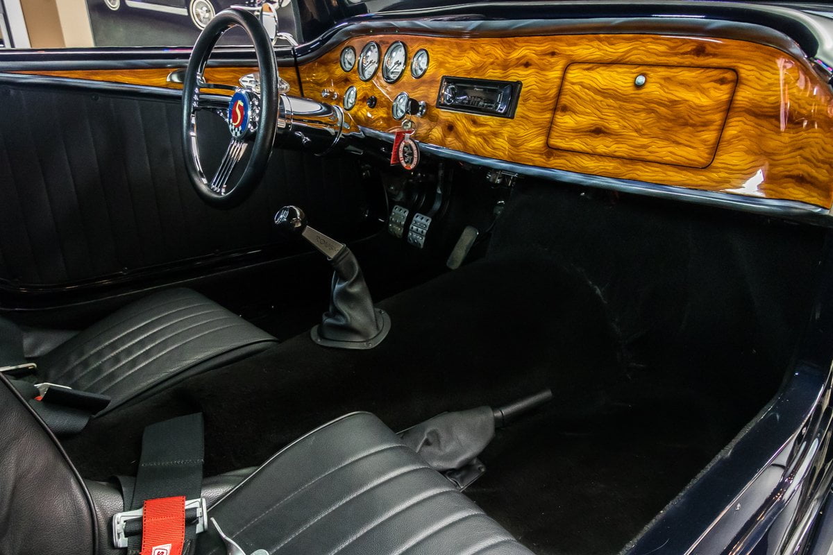 Cette Ford Roadster Factory Five de 1933 avec une superbe peinture extérieure Black Sapphire Pearl.