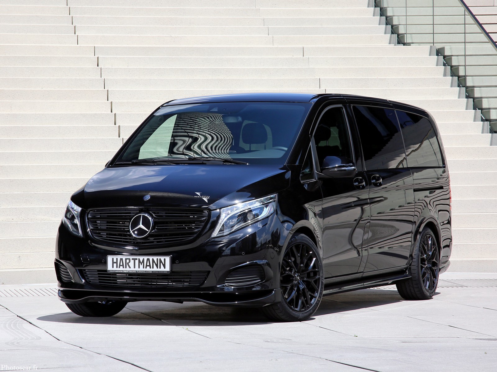 Mercedes V250 D Black Pearl. Les experts de VANSPORTS.DE, une marque de Heinz Hartmann GmbH, spécialisée dans le raffinement des camionnettes Mercedes-Benz, donnent au V 250 d présenté ici le nom de « Black Pearl ». Parce que le MPV apparaît non seulement en noir brillant, mais reçoit également un package de raffinement complet de VANSPORTS.DE.