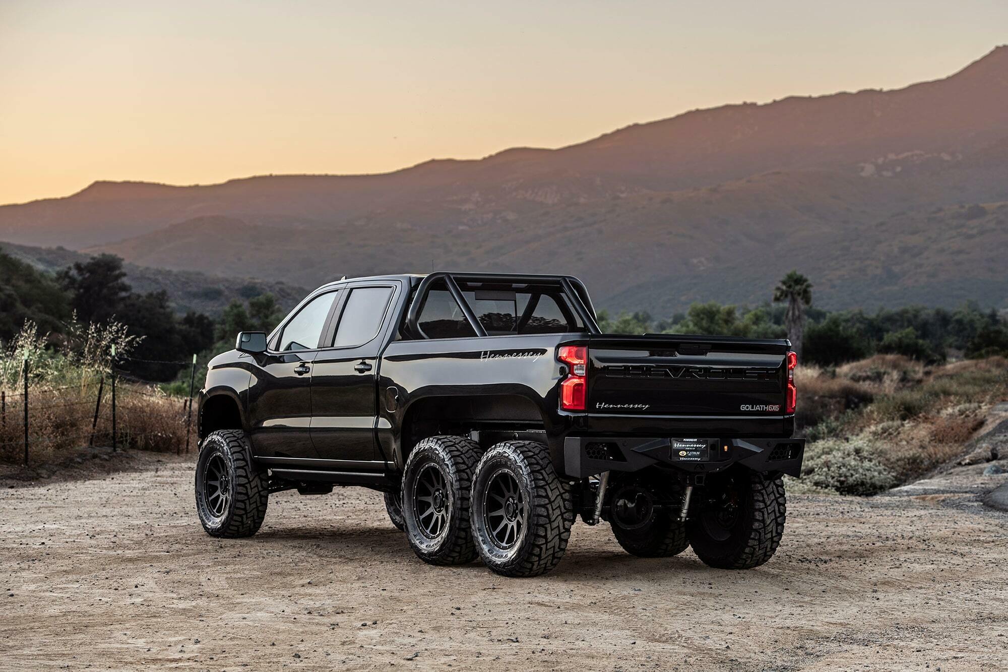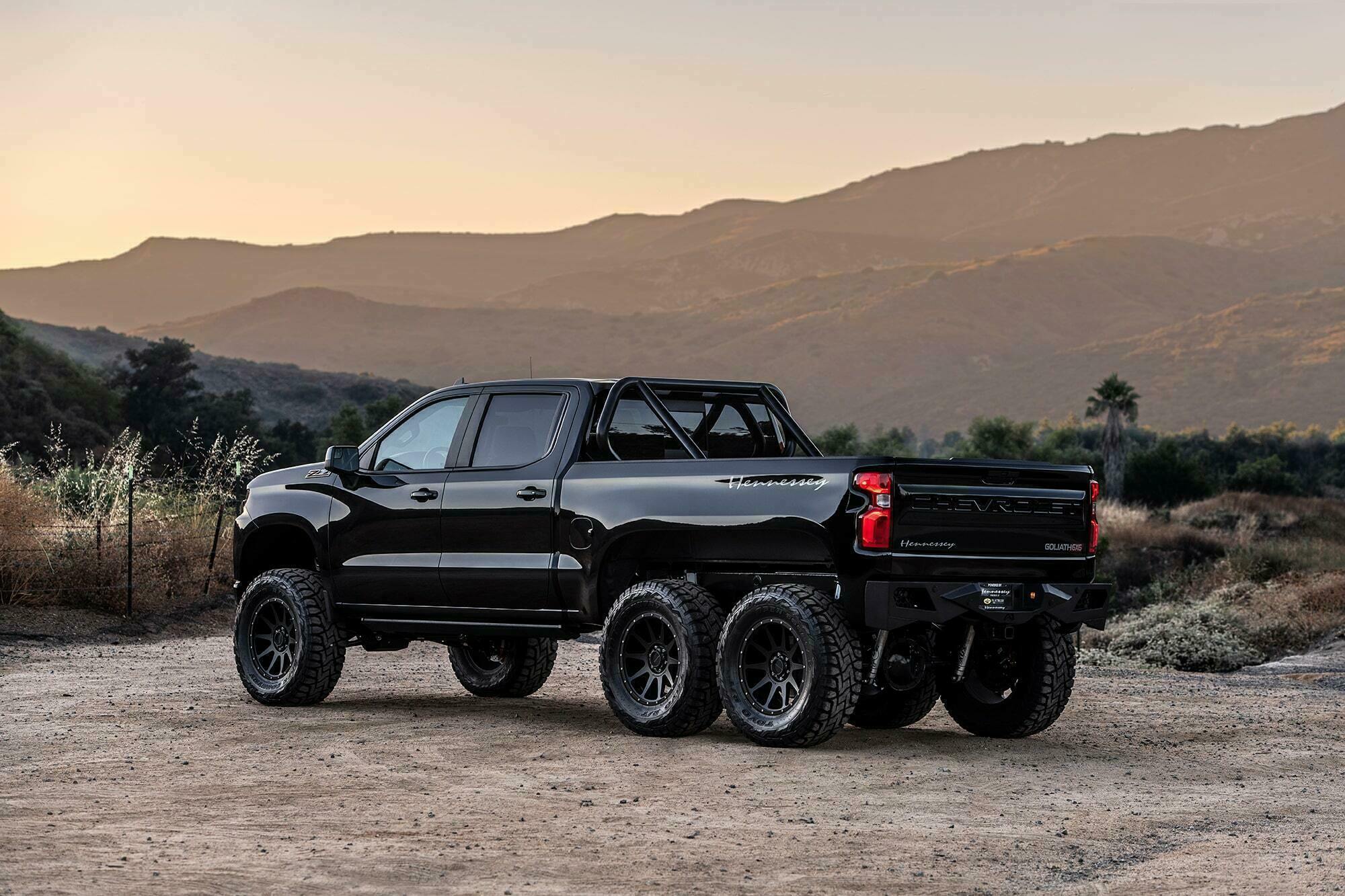 Le Hennessey Goliath 6×6 est un véhicule unique construit par Hennessey dans une série limitée de 24 camions. Sa base est le Chevrolet Silverado Trail Boss Z71 2019. Le camion a un moteur réglé, un kit de levage et un lit personnalisé. Il a des jantes de 20 pouces et des pneus de 37 pouces.