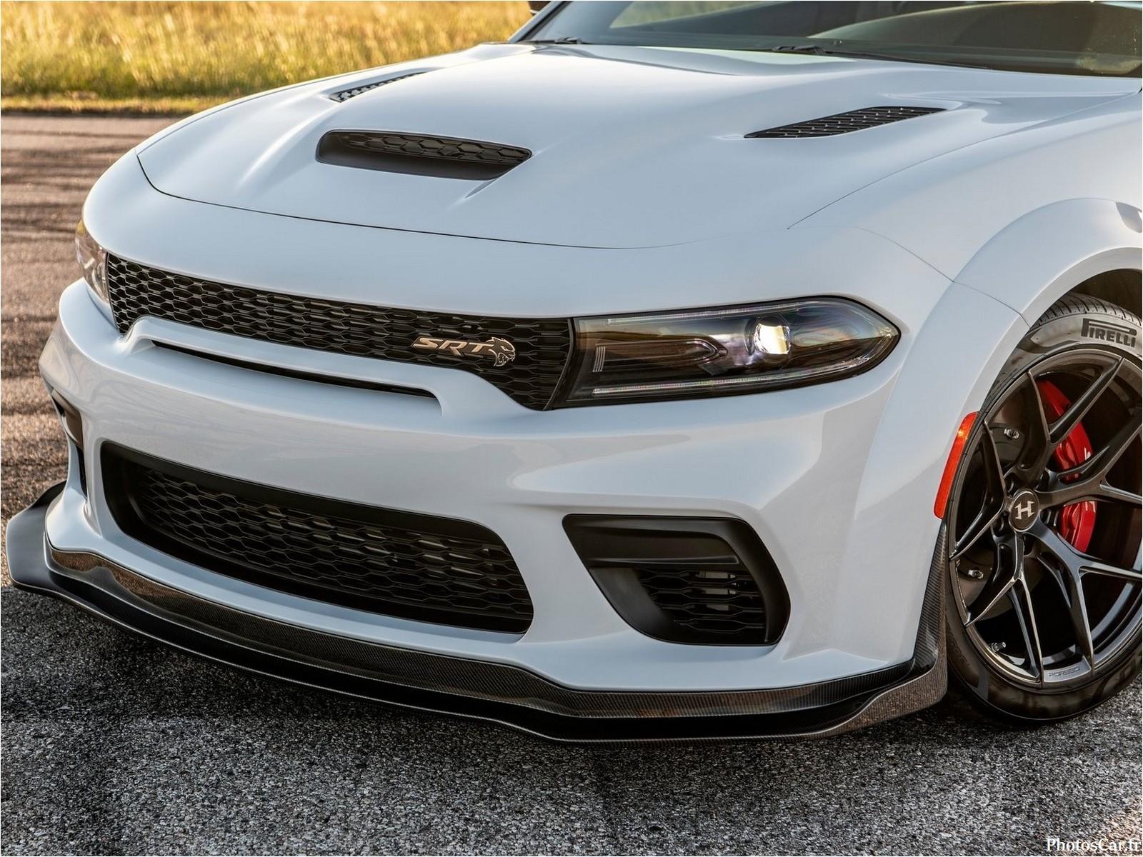 À l’avant il y a un nouveau séparateur avant en fibre de carbone, qui lui donne un look plus menaçant. Les phares et la calandre identiques à ceux de la Charger Hellcat de base, mais ils sont désormais encadrés par des prises d’air plus grandes.