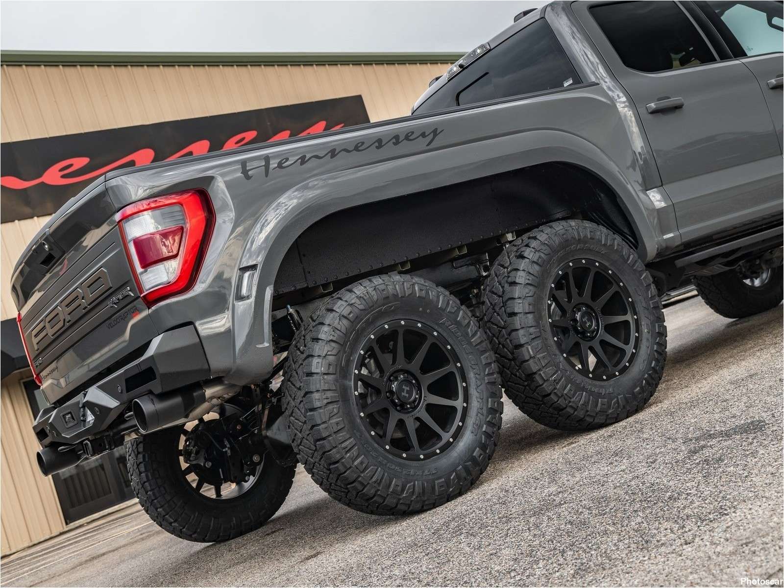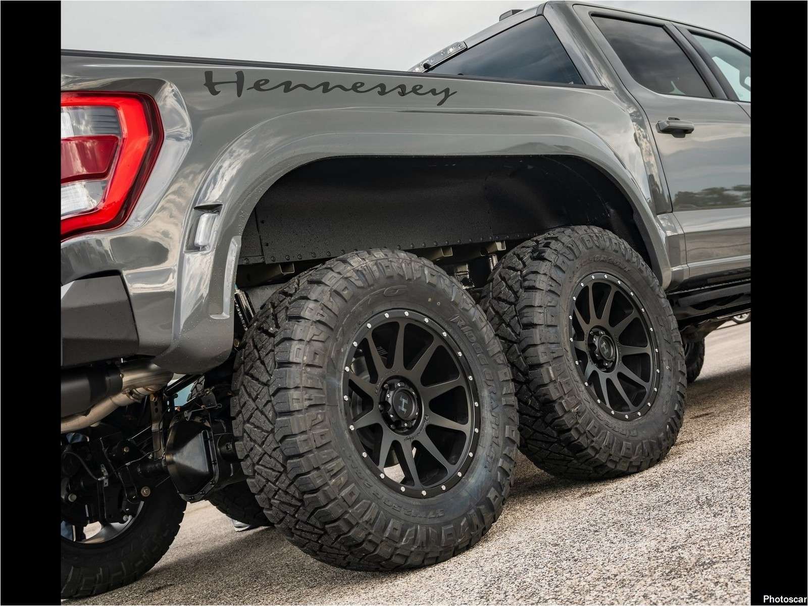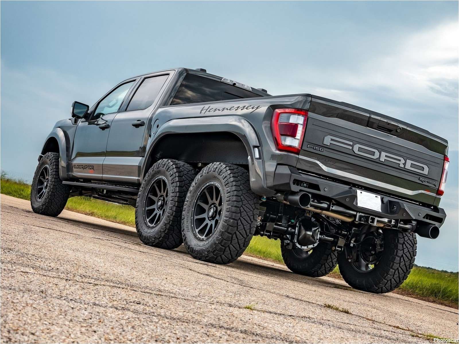 Le nouveau Hennessey VelociRaptor 6×6 est également plus long de plusieurs pouces que le Raptor ordinaire. Ceci est possible grâce à une combinaison d’un ascenseur de 3 pouces! de roues Hennessey de 20 pouces mises à jour et de pneus tout-terrain de 37 pouces.