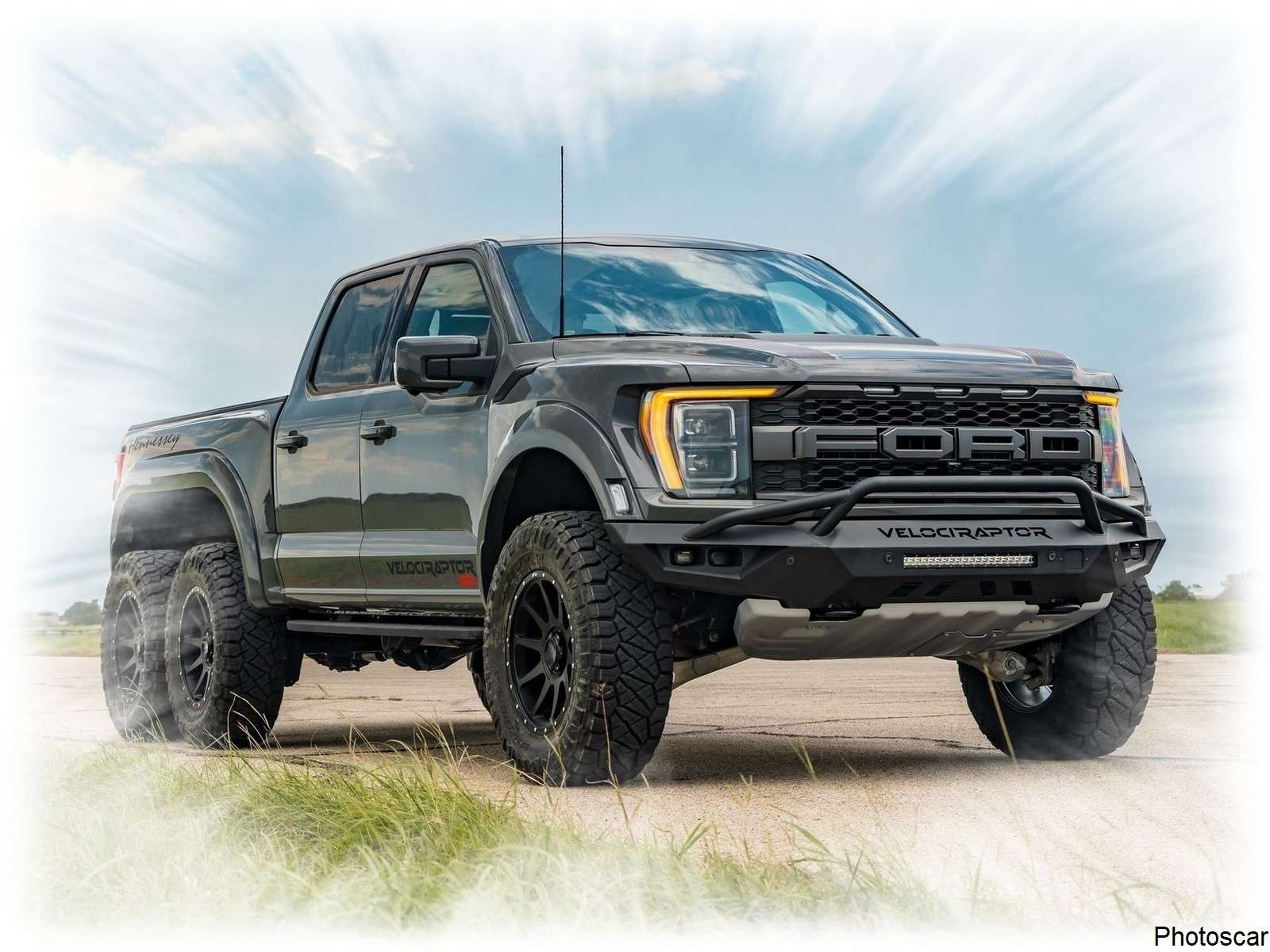 « Tout est plus grand et plus rapide au Texas, et le VelociRaptor 6×6 pousse ce concept à l’extrême ! Basé sur les performances, la puissance et la présence de notre camion VelociRaptor. Le dernier six roues motrices ravira les clients partout aux États-Unis et dans le monde. « Il est puissant. Il peut aller partout », a déclaré le fondateur et PDG de l’entreprise, John Hennessey.