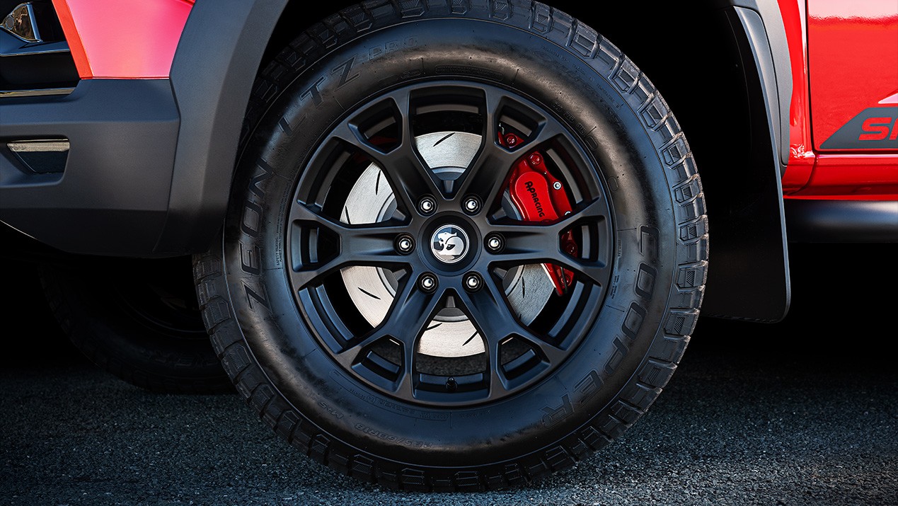 Les nouvelles jantes en alliage forgé de 18 x 10 pouces à 6 branches en noir mat font leurs débuts en équipement de série sur les deux modèles. Ces alliages légers sont enveloppés de pneus tout-terrain Cooper Zeon LTZ Pro Sports. Il sont un hybride entre un pneu de camion de sport et un pneu tout-terrain. En plus de leur robustesse tout-terrain, ces pneus hybrides ont été spécialement sélectionnés par les ingénieurs châssis de HSV. Cela pour leurs caractéristiques exceptionnelles de performances sur route, en particulier sur les routes goudronnées et en terre battue.