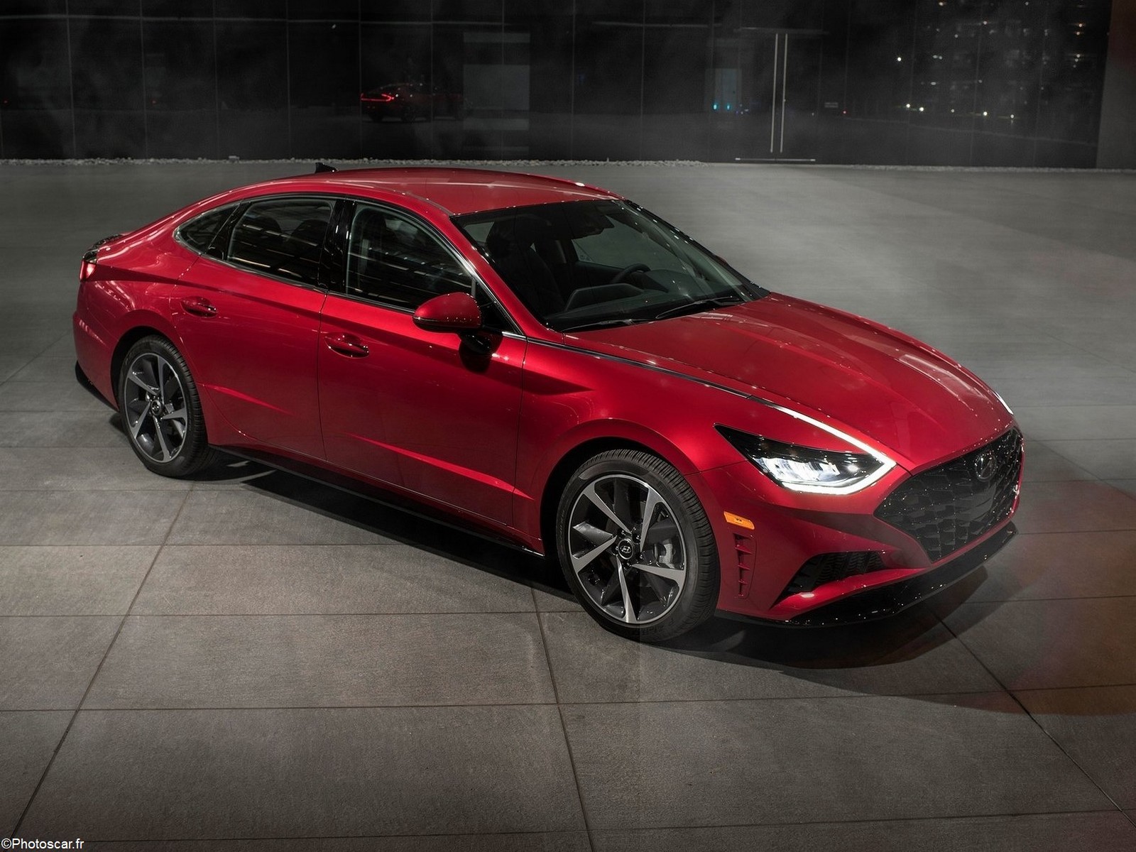 Révélée en ligne mercredi, la Sonata 2020 présente un profil de type coupé à quatre portes, une attitude basse en bandoulière et des lumières d’accentuation LED sauvages. Le design vient du concept-car Le Fil Rouge présenté au Salon international de l’automobile de Genève l’année dernière. Ce concept impliquait un nouveau langage de design que Hyundai a baptisé « Sportivité sensuelle ». La Sonata reprend certains des meilleurs attributs du concept avec une interprétation plus large de la calandre actuelle et une ligne d’accentuation placée dessous. La ligne se termine en direction des phares et découpe le fascia avant pour un aspect plus large.