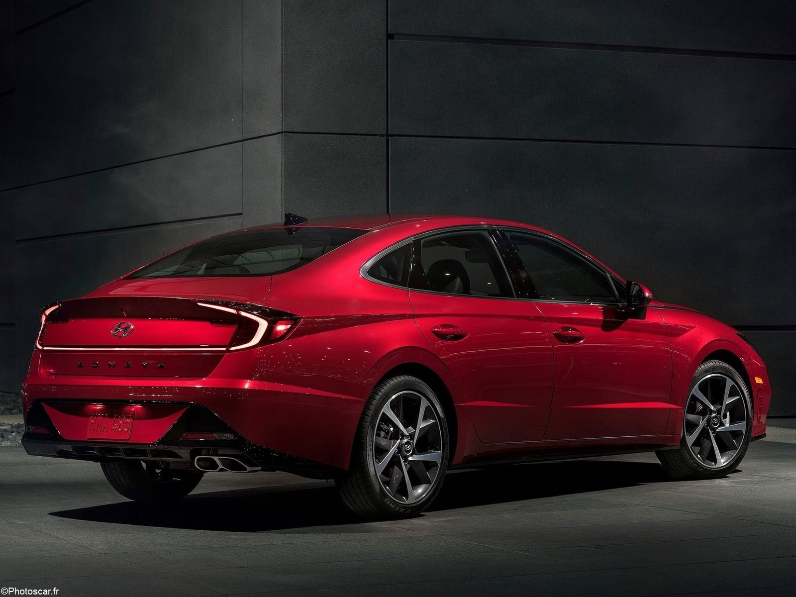 Hyundai a adouci le look de la berline à trois compartiments et dégage une grande élégance. Elle a opté pour une serre en pente permettant de retrouver la magie d’il y a deux générations. Le pont arrière en pente se jette dans un spoiler à queue de ducktail où sont assis des feux arrière en forme de boomerang. Une mince ligne de lumières relie les deux feux arrière au coffre, ce qui est également destiné à souligner la largeur de la voiture.