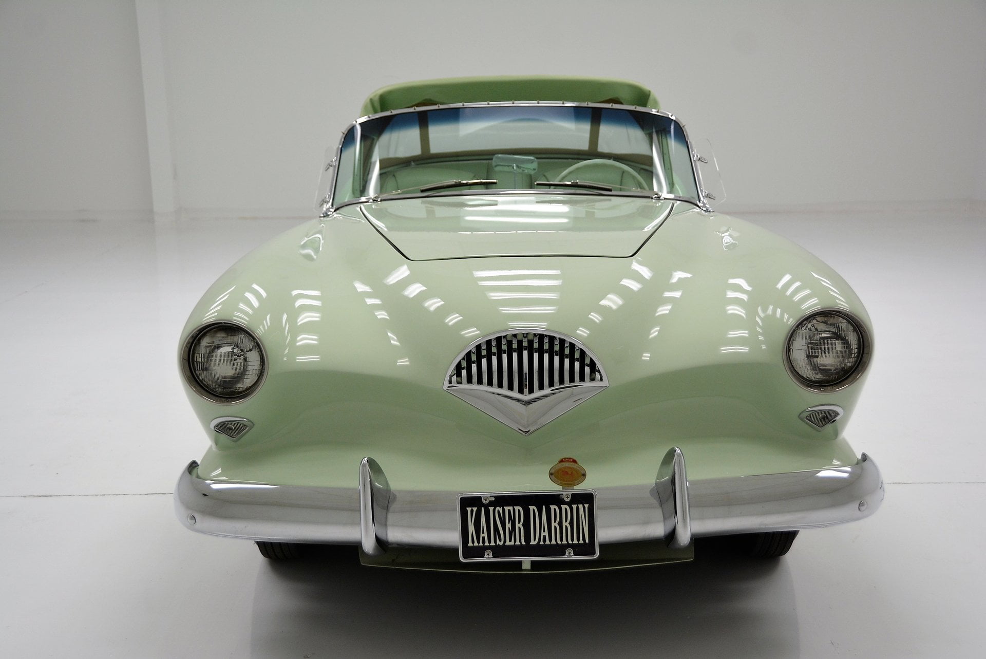 Le Kaiser-Darrin a fait ses débuts en secret, dans les boutiques de Howard «Dutch» Darrin en Californie. Darrin avait conçu le modèle Kaisers de 1951, mais s’est brouillé avec la direction de Kaiser. La carrosserie en fibre de verre de la voiture a incorporé la marque «Darrin dip» le long des portes, qui étaient d’un nouveau design coulissant. Pour entrer dans le Kaiser-Darrin, on a tordu la poignée de la porte et poussé la porte vers l’avant dans l’aile avant.