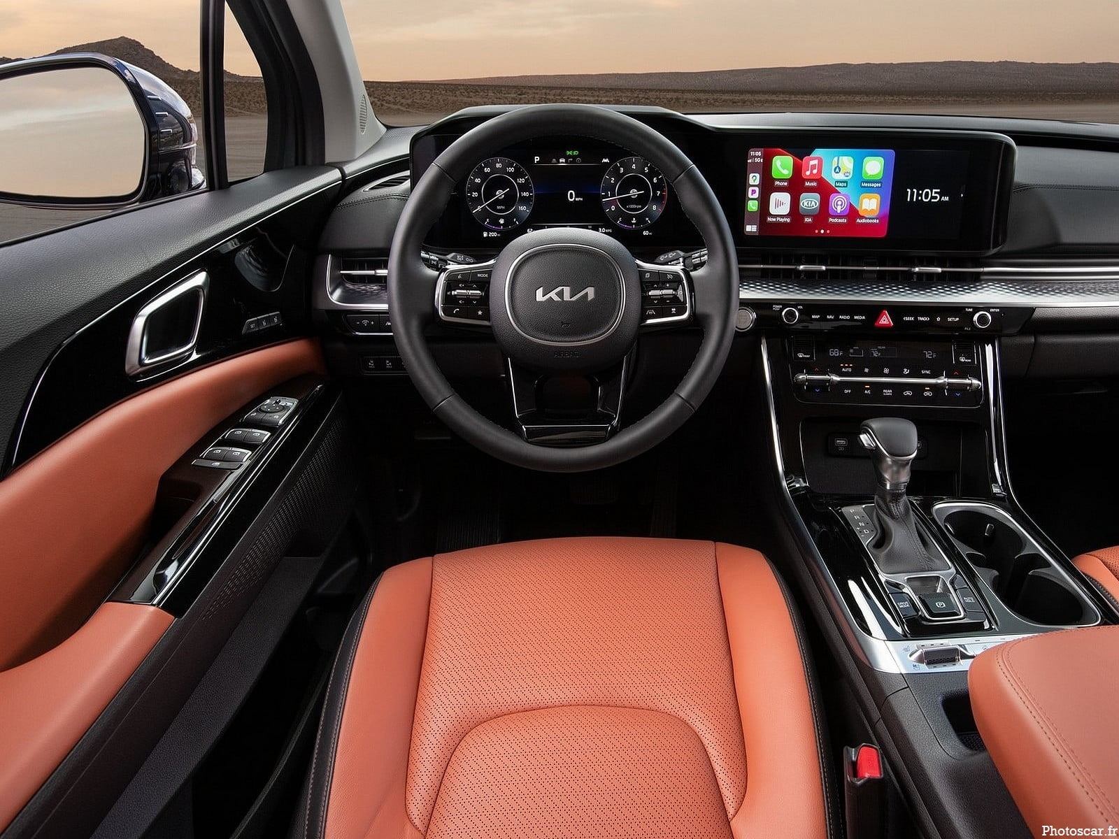 L’intérieur du Carnival semble beaucoup plus haut de gamme que celui de la Sedona sortante! et le modèle illustré présente une teinte intéressante de revêtement en cuir marron. Un écran d’infodivertissement à écran tactile de 8,0 pouces est de série! avec un écran tactile plus grand de 12,3 pouces et un écran de jauge numérique en option. Il existe également deux écrans de divertissement disponibles pour les passagers arrière qui ont des capacités de mise en miroir de smartphone. Les caractéristiques standard et en option pour les familles comprennent un système d’interphone! des portes coulissantes électriques et un hayon électrique! une caméra offrant une vue sur les passagers arrière et divers ports USB et prises de courant aux places arrière.