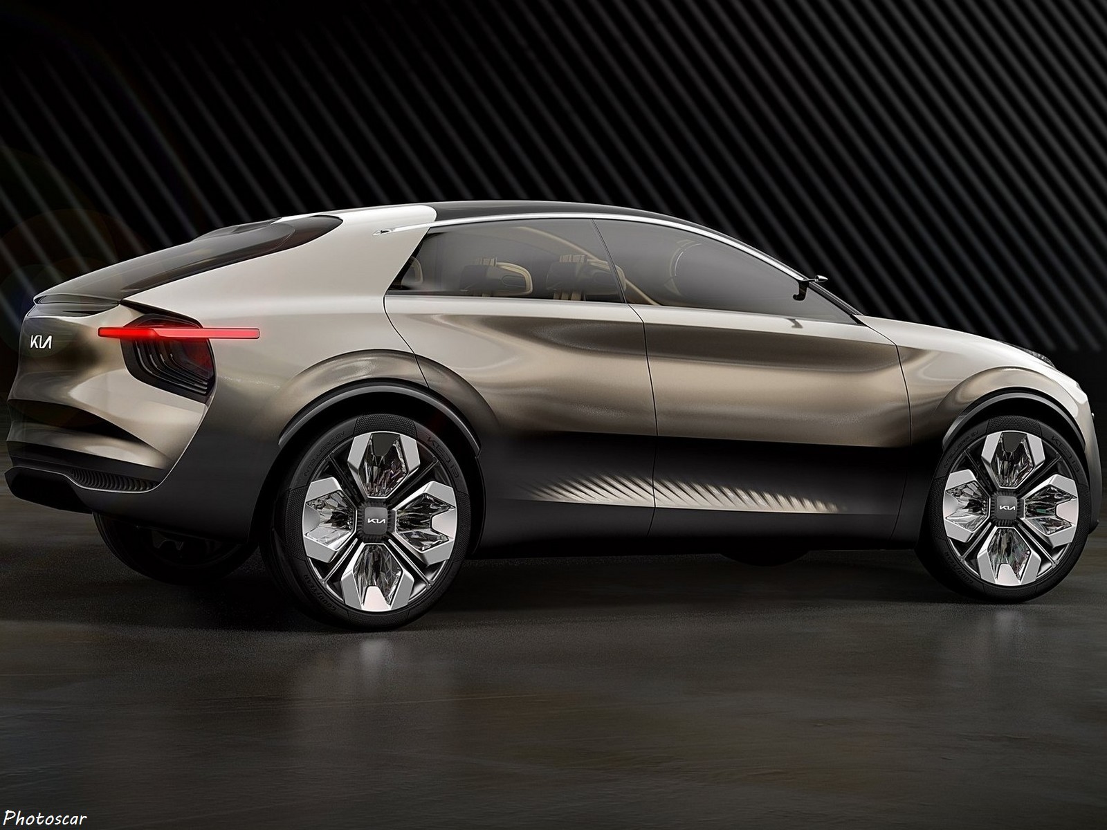 Les quatre roues radicales de 22 pouces du concept – dotées de panneaux en acrylique incrustés! polis sur leurs faces extérieures et diamants taillés sur leurs faces intérieures; qui créent un affichage lumineux éblouissant lorsque les roues tournent. Tous portent des pneus Goodyear Intelligrip EV 255 / 35R22 qui, selon Kia, communiqueraient les conditions de la route au véhicule, améliorant ainsi l’expérience de conduite.