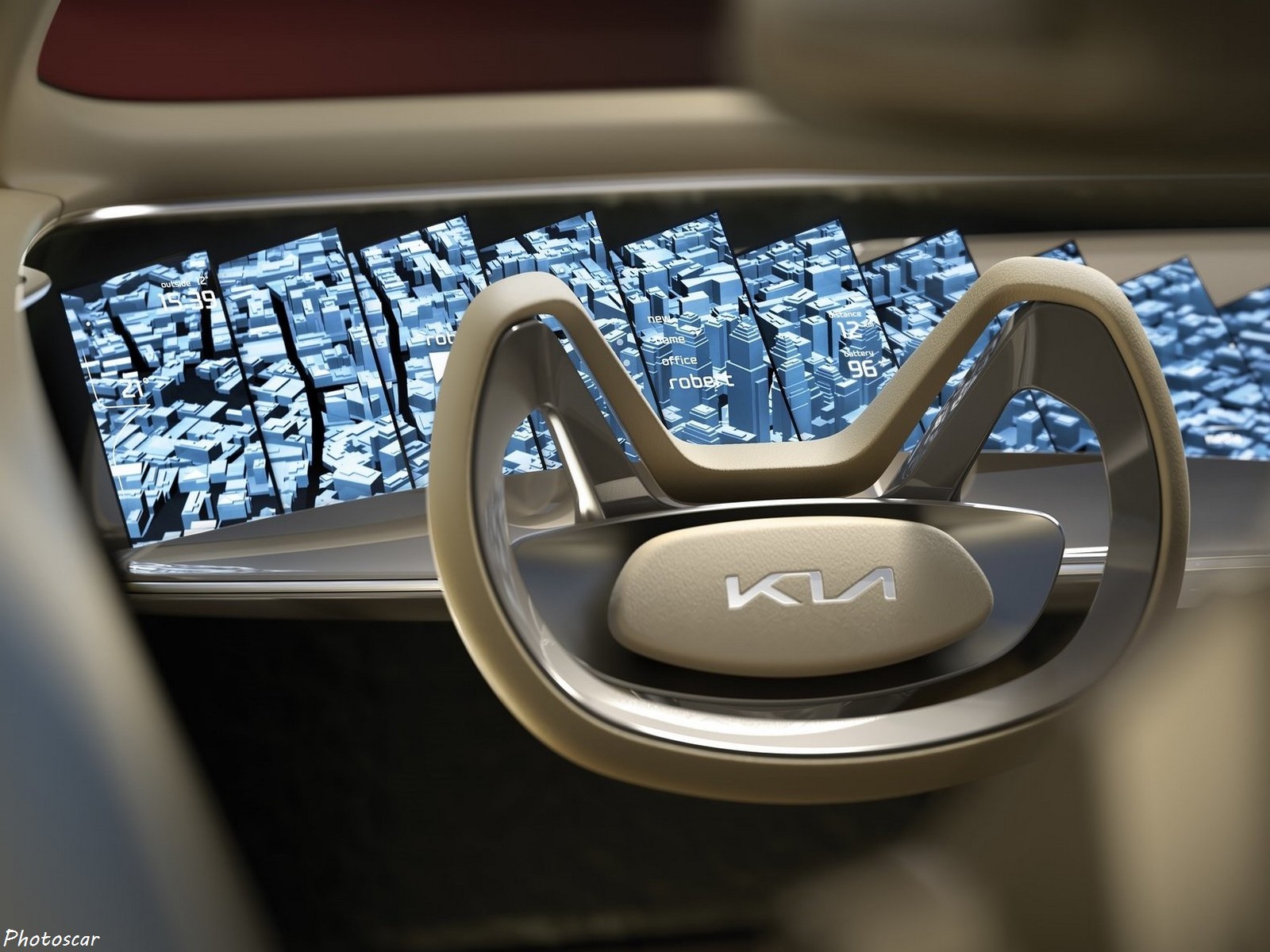 Enfin, Kia souligne la tendance de l’industrie automobile à devenir le plus grand écran d’information multimédia! Cela peut s’adapté à un véhicule et fragmente cet écran en 21 petits fragments! installés comme des dentelures sur le tableau de bord. Et pourtant, malgré son exotisme, Imagine de Kia est assez pratique; il possède, outre un coffre traditionnel, une malle située à l’emplacement où le moteur se trouve normalement installé dans un véhicule à combustion.