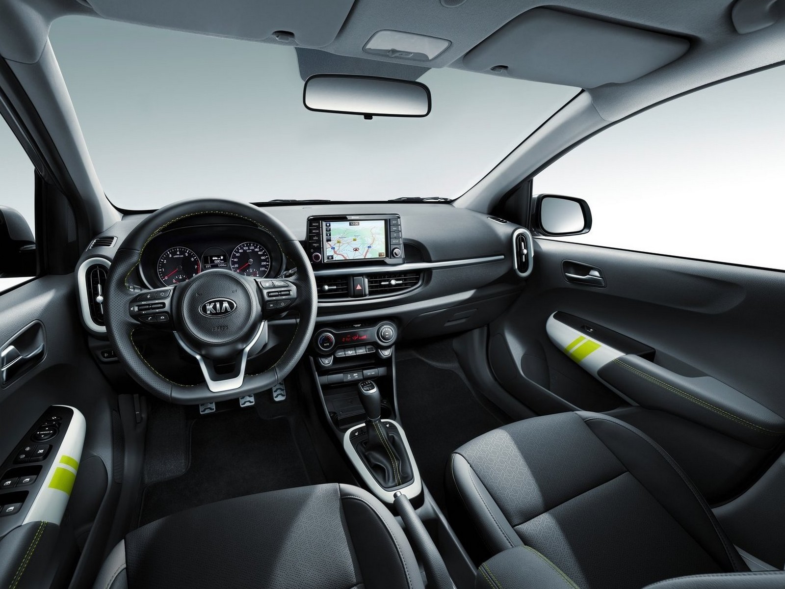 Contrairement à l’extérieur, l’intérieur est le même que dans le modèle standard. Le nouveau Picanto est venu avec un intérieur de plus haute qualité. Egalement avec un tableau de bord qui a un design plus propre. Il dispose d’une bande de satin chrome-effet qui s’étend sur la largeur entre le combiné d’instruments et le panneau de porte passager.