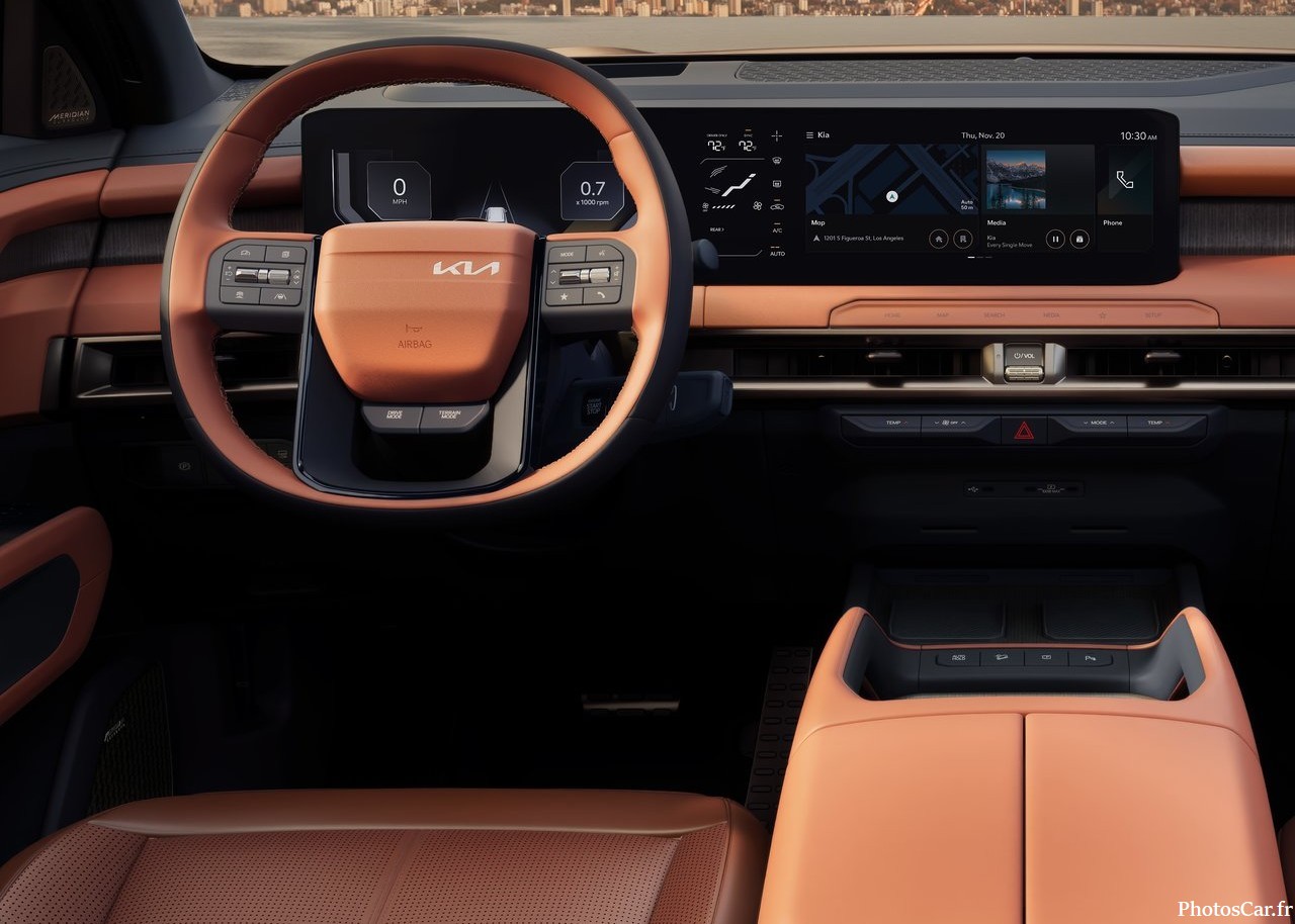 L’habitacle du Telluride 2027 est l’endroit où Kia a fait le plus d’efforts pour améliorer l’expérience. L’ergonomie a été repensée pour une utilisation plus intuitive des commandes, et les passagers bénéficient d’un espace généreux sur les trois rangées. Le confort est assuré par des sièges chauffants et ventilés, disponibles même pour la deuxième rangée dans certaines versions. De plus, l’intégration d’un immense écran incurvé, regroupant le combiné d’instruments et l’écran d’infodivertissement, donne un côté futuriste et technologique à l’ensemble. La qualité des finitions est digne de véhicules beaucoup plus chers. On trouve des boiseries, des insertions métalliques et un éclairage d’ambiance personnalisable. Le Telluride offre un environnement de conduite et de voyage qui est à la fois pratique pour la famille et très élégant.