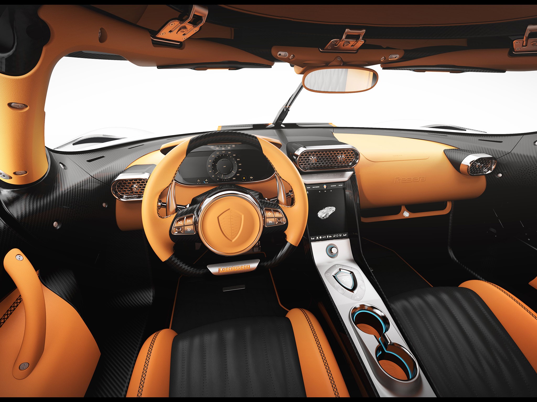 La Regera offre également tout le confort et la commodité technique d’une voiture de sport de luxe; toit amovible et escamotable pour une conduite en plein air toute l’année; système de climatisation à contrôle complet; Apple CarPlay sans fil; deux poches de chargement pour téléphone sans fil; concert Système audio de haute qualité; sièges chauffants réglables électriquement; pare-brise chauffant; aide au stationnement avec 4 caméras; active aérodynamique; amortisseurs actifs, contrôle du couple, réglage de la hauteur de caisse, ouverture et fermeture sans contact de l’AutoSkin des portes et des capots, des systèmes de contrôle électronique SmartCentre et SmartCluster, des mises à jour logicielles OTA depuis le Cloud Koenigsegg, et bien plus encore.