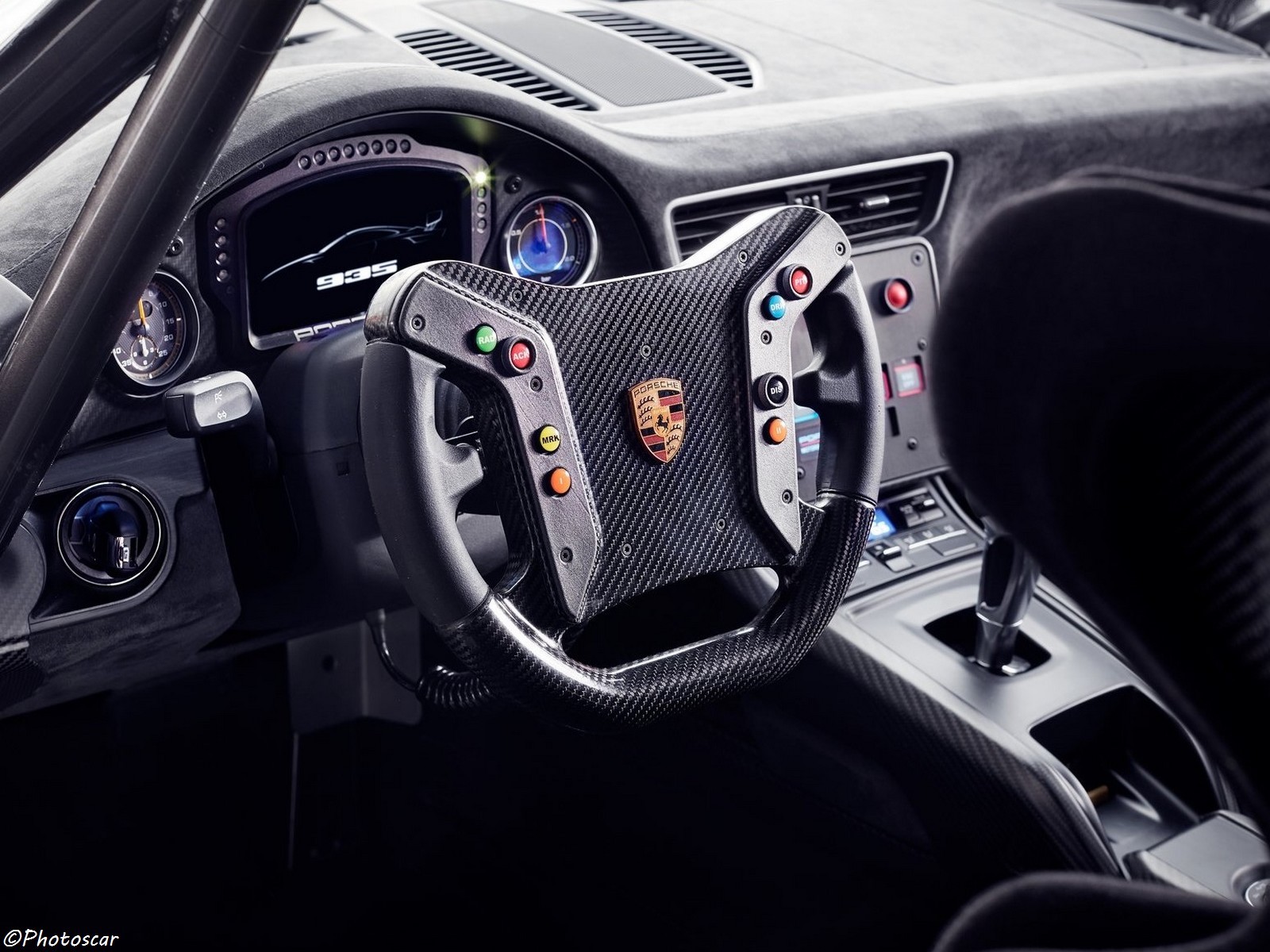 La nouvelle Porsche 935 est-équipée d’un volant en fibre de carbone; d’un siège de course Recaro; d’un harnais six points batterie lithium-ion dans le plancher du passager. La voiture également équipée d’un vérin pneumatique et d’un système d’extinction d’incendie.