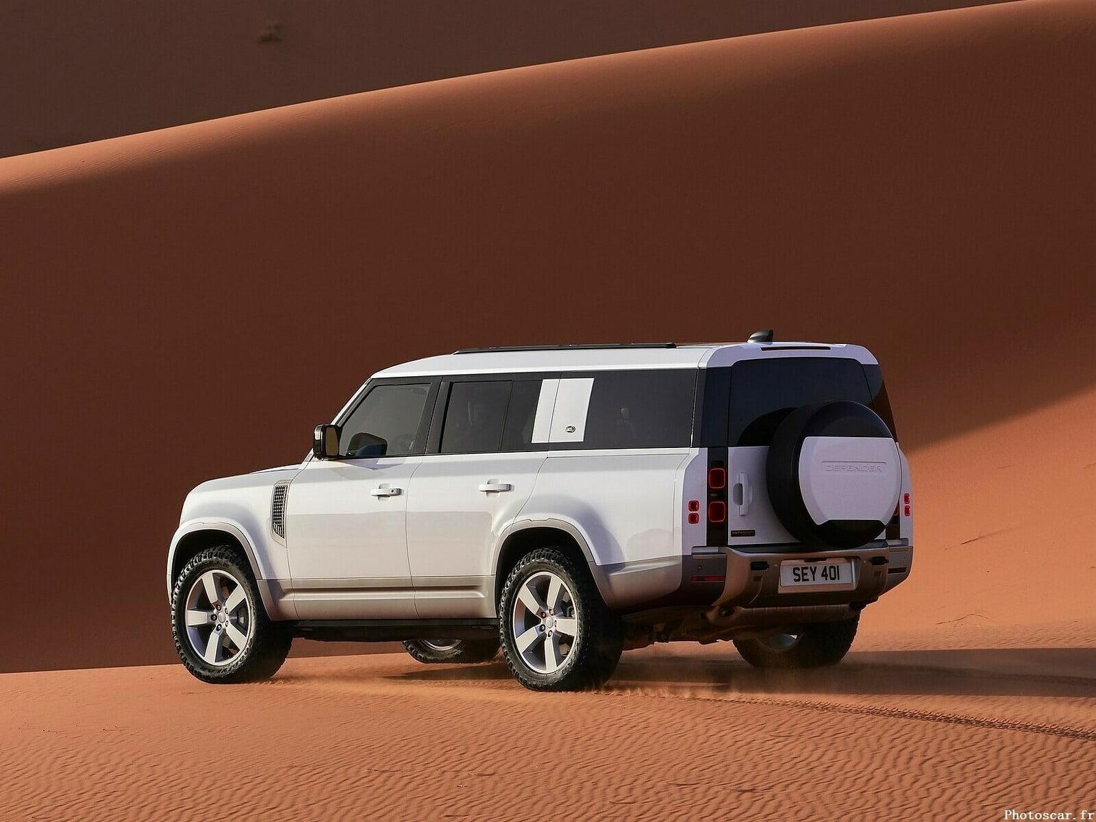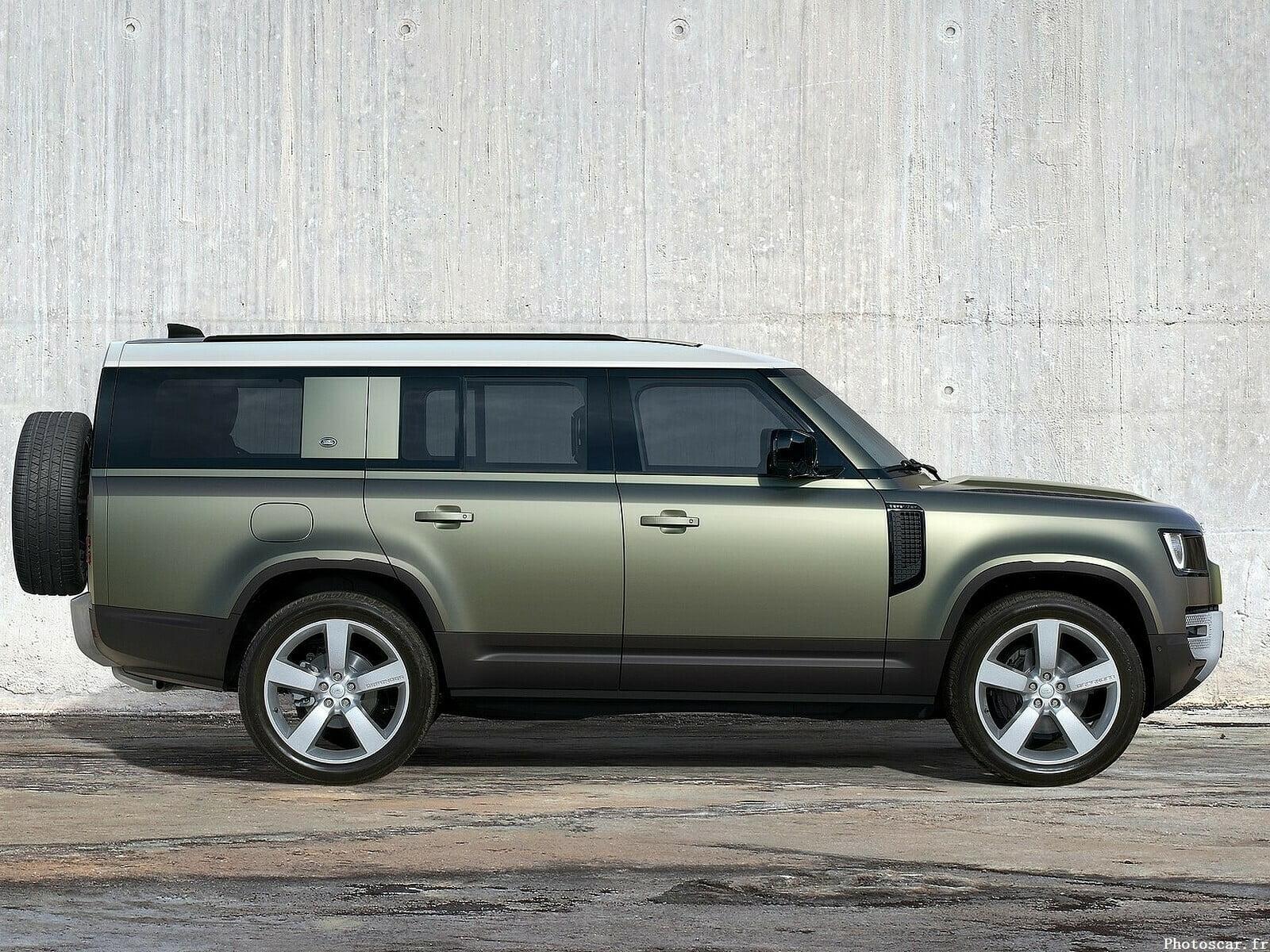 La conception du Defender reste en grande partie la même jusqu’aux montants C. Derrière cela, la voiture reçoit 13,3 pouces ou 340 mm de carrosserie supplémentaire. La longueur totale du SUV mesure désormais 5 358 mm. Le SUV a l’air massif, mais le design carré ne le rend pas disgracieux. L’espace supplémentaire permet également la troisième rangée de sièges. Par conséquent, le modèle peut désormais accueillir jusqu’à huit personnes.
