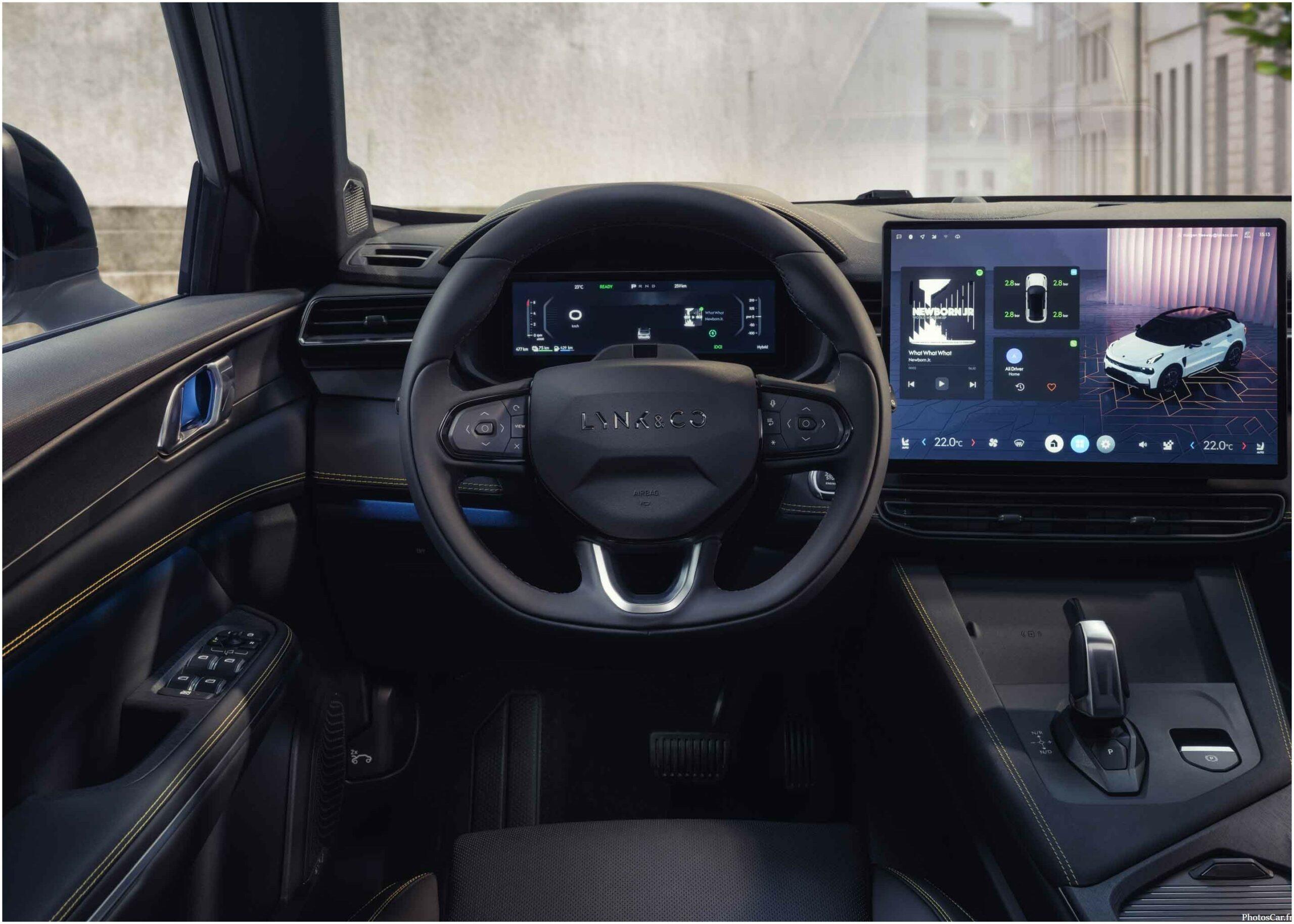 Le LynkCo 01 PHEV se démarque par un design à la fois costaud et chic. Avec sa silhouette épurée et ses lignes futuristes, il attire tous les regards. Les phares LED en boomerang, signature de la marque, ajoutent une touche audacieuse et élégante. À l’intérieur, c’est le grand luxe : écran tactile XXL, connectivité intuitive et matériaux haut de gamme. Le système multimédia embarque toutes les options modernes. Cela rend chaque trajet super agréable. Peu importe que ce soit pour un petit trajet, ou pour un long voyage.