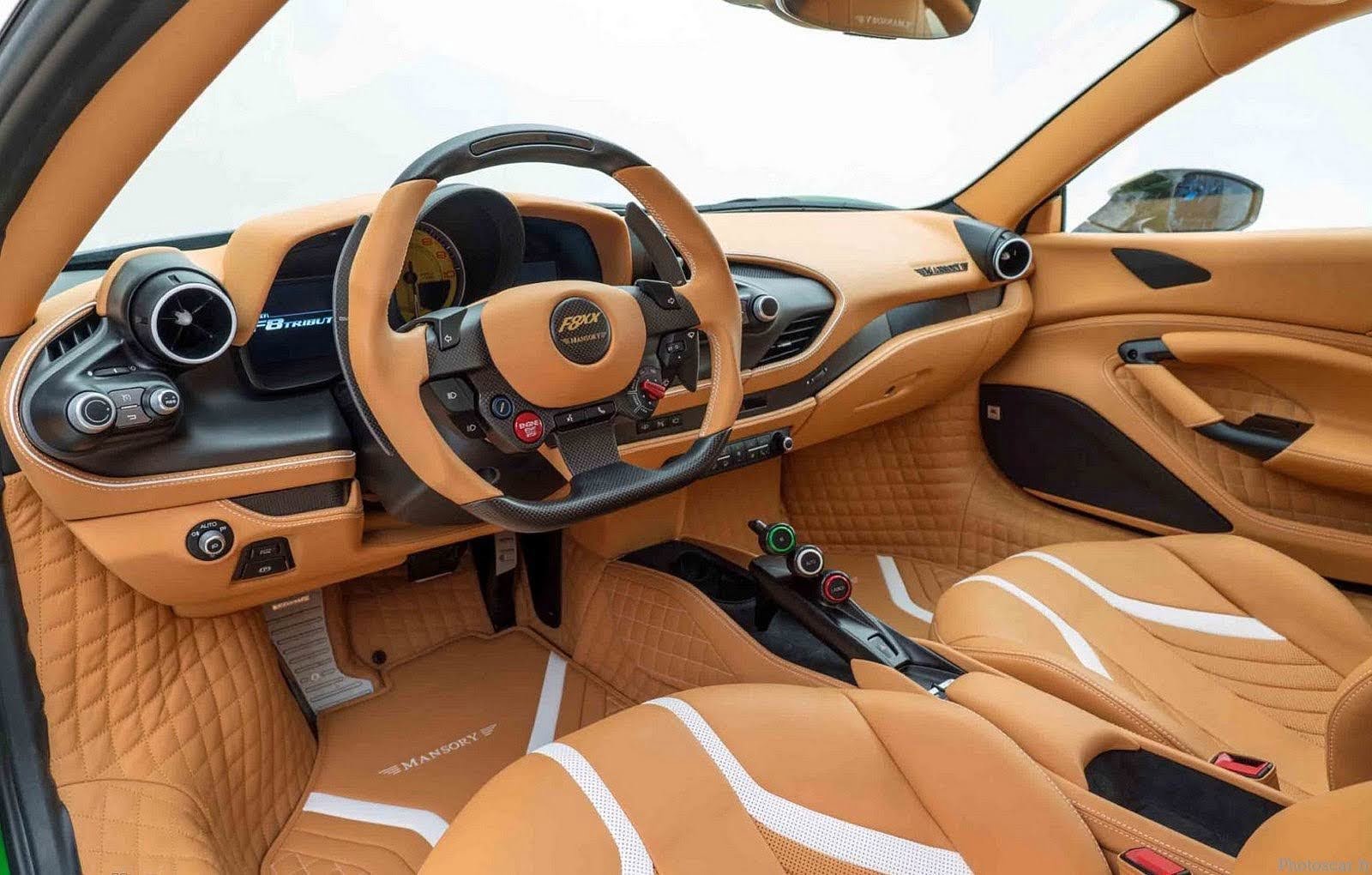 Mais l’intérieur n’est pas épargné non plus ? Les spécialistes de l’intérieur de Mansory créent donc une atmosphère sportive qui combine une fois de plus parfaitement fonctionnalité, confort et design. L’habitacle du «Mansory F8XX» ? Entièrement doublé de cuir beige avec des applications blanches et poursuit la norme de luxe qui s’applique à toutes les conversions complètes Mansory au plus haut niveau à l’intérieur.