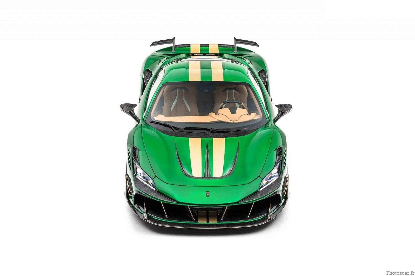 Alors que la peinture spéciale «Catania Green» peut attirer l’attention du spectateur au premier coup d’œil! les innombrables détails du «Mansory F8XX»! fabriqués avec amour et à la main selon les normes les plus élevées! réussissent à captiver le spectateur presque simultanément! de sorte que le F8XX est capable de se présenter au spectateur comme une œuvre d’art globale harmonieuse.