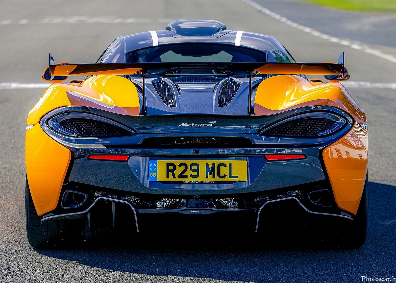 L’ensemble d’ailes offre trois angles disponibles qui peuvent_être réglés par un détaillant McLaren. Les angles les plus agressifs augmentent la force d’appui arrière. Cela aboutit à un maximum de 185 kg (408 lb) à 250 km / h (155 mph). D’autres éléments aérodynamiques adaptés de la 570S GT4 comprennent le pare-chocs avant. Il y a aussi le séparateur et le capot. Des avions de plongée sont également inclus.