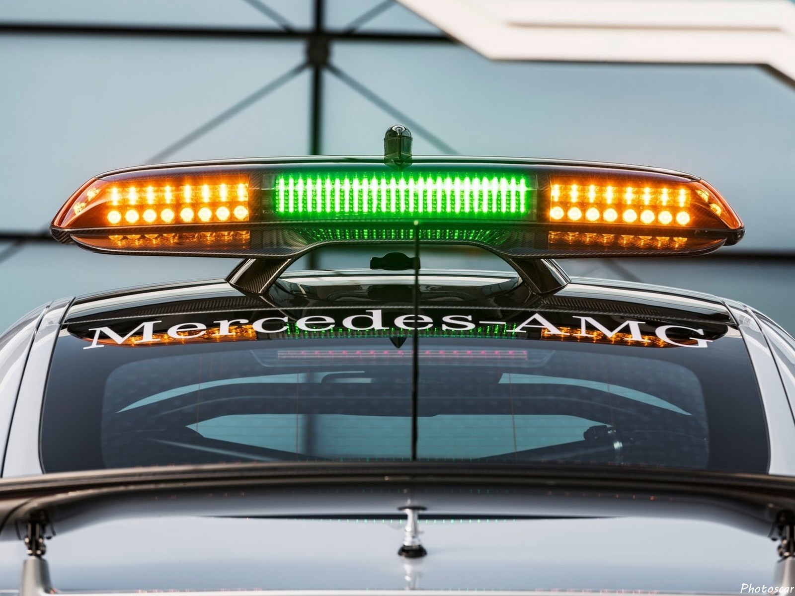 Ensuite, bien sûr, il y a la livrée ainsi que la barre lumineuse sur le toit. Ce dernier est_positionné sur une prise d’air en fibre de carbone conçue pour offrir la moindre résistance possible à l’air tout en assurant en même temps un flux d’air aérodynamiquement optimisé vers l’aileron arrière.