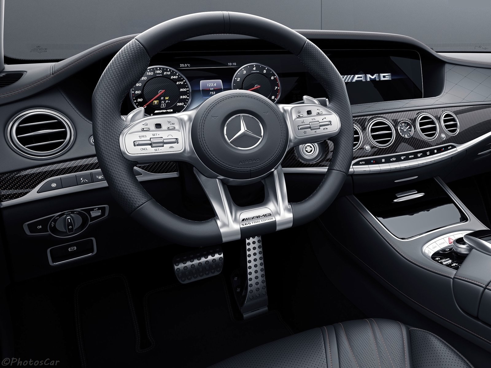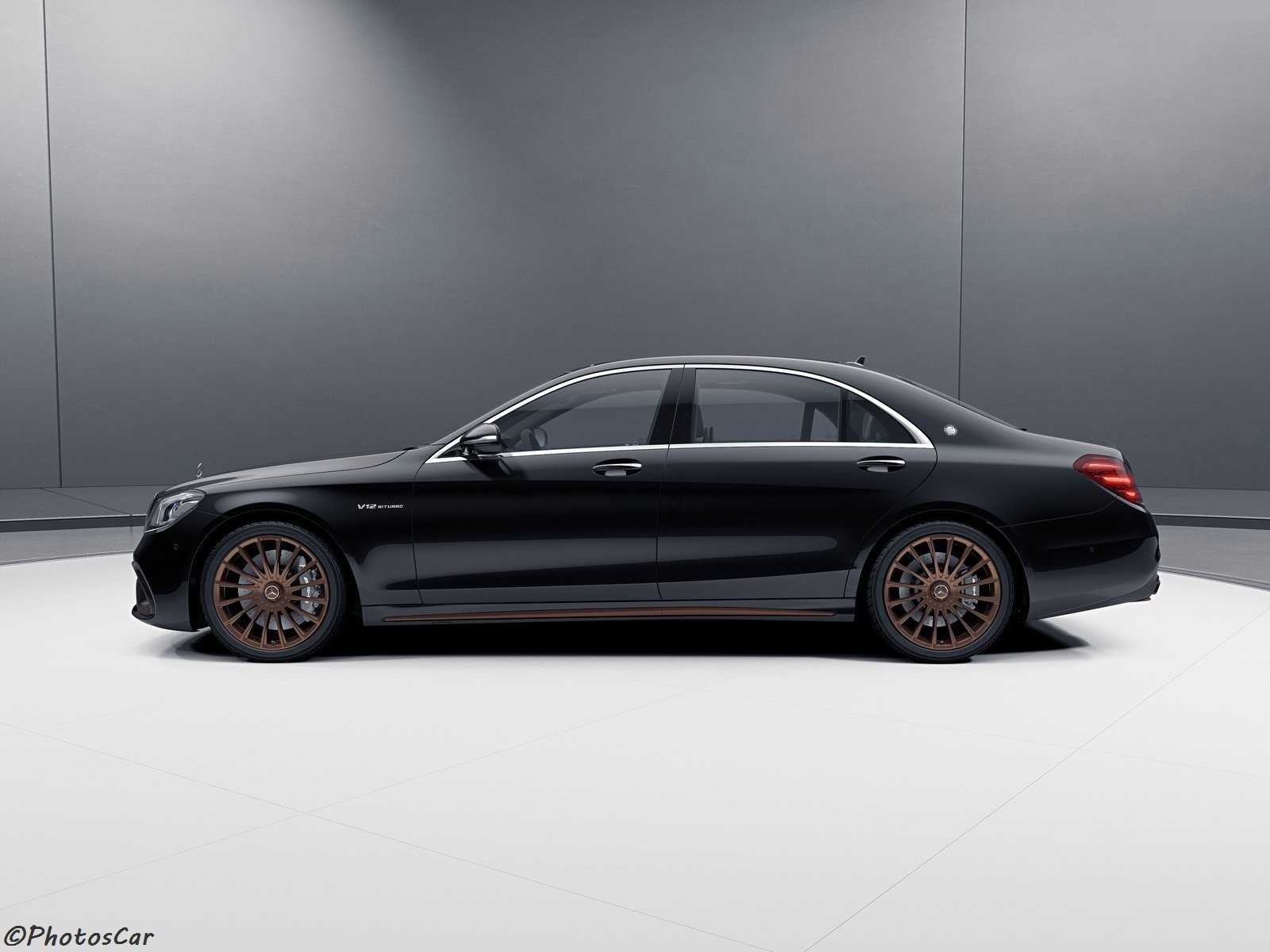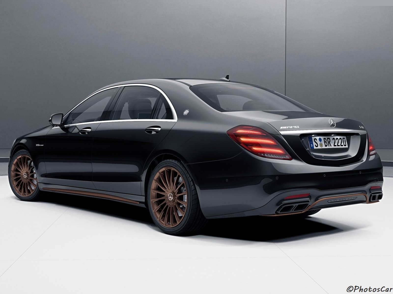 Mercedes-AMG propose uniquement une couleur de peinture unique appelée noir obsidien brillant pour la S65 AMG « Final Edition ». Même le tuyau d’échappement arrière double est également chromé noir au lieu de Boule chromée comme d’habitude. Les « jambes sans soudure » de la voiture sont tracées séparément avec des roues à rayons multiples de 20 pouces! avec des tons de bronze translucides, des accents de couleur cuivre apparaissent également sur le pare-chocs avant / arrière et les côtés « en pente » de la voiture.